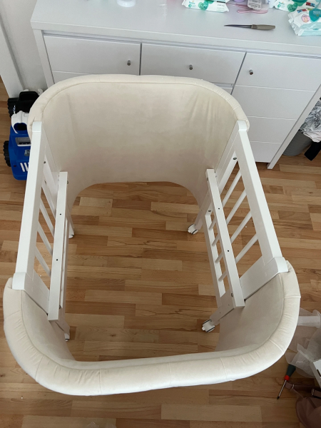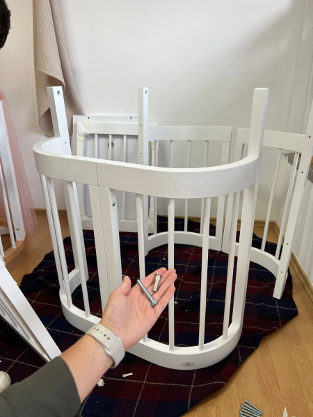 - Stejný postup jako při skládání postýlky Blush - šrouby přimontujeme bočnice postýlky.