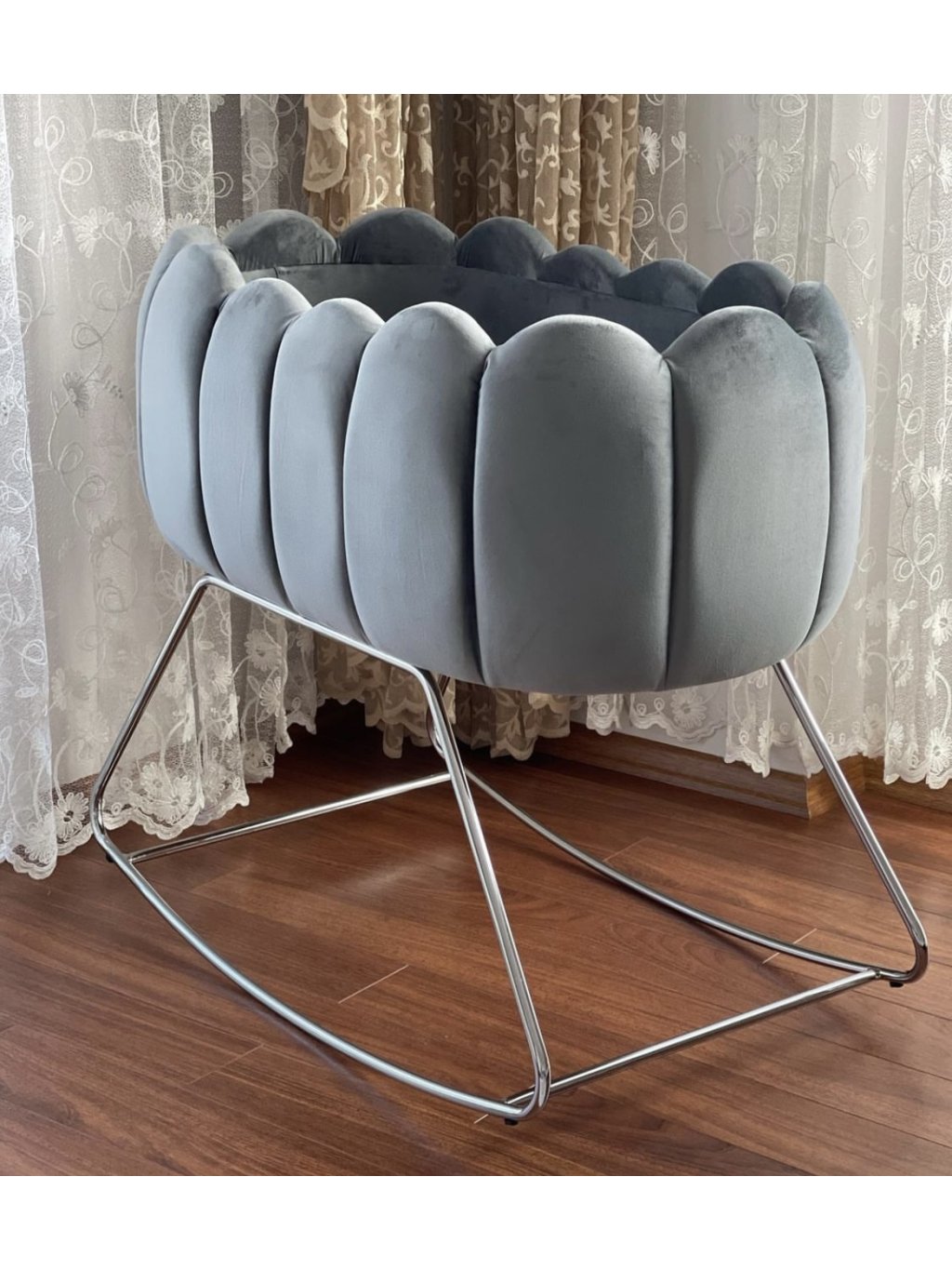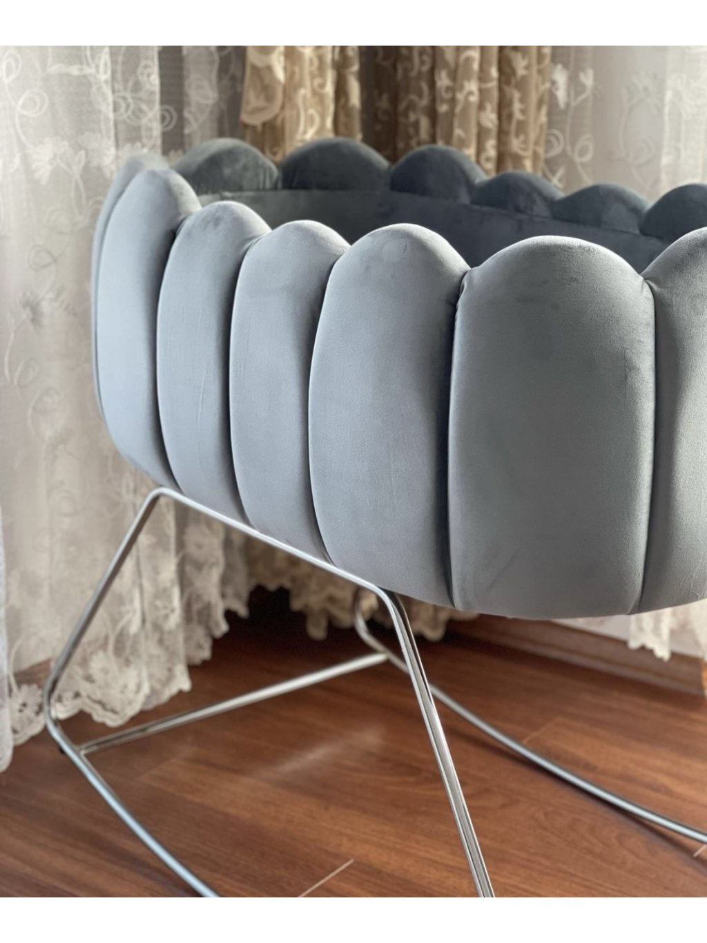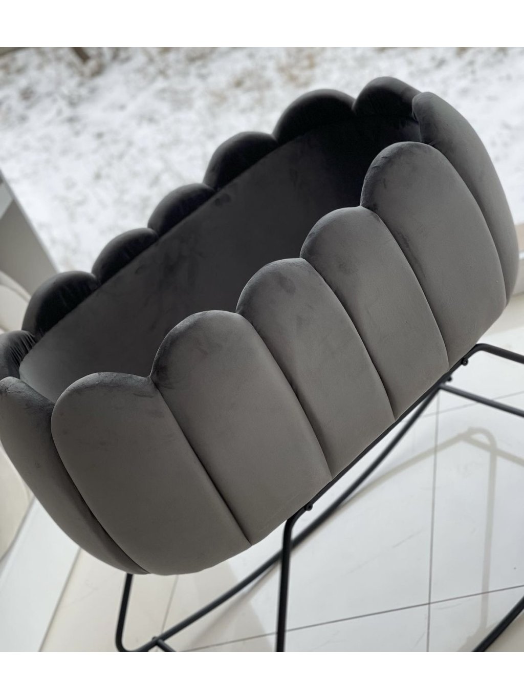 Chesterfield DARK GREY koš s houpacími lyžinami OYSTER č. 53 čalouněný chesterfield koš s houpacími nohami