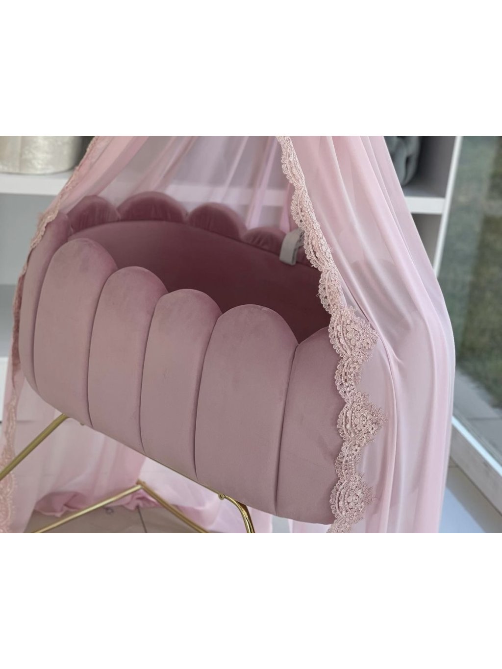 Chesterfield PINK koš OYSTER (vlnky) s houpacími lyžinami č. 8 čalouněný chesterfield koš s houpacími nohami