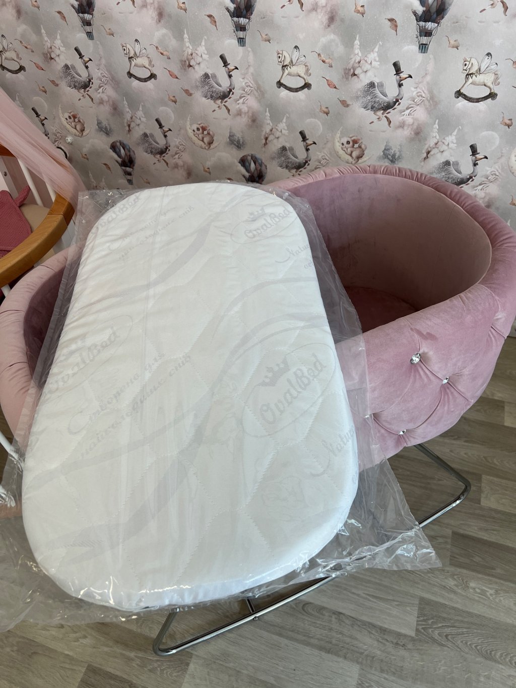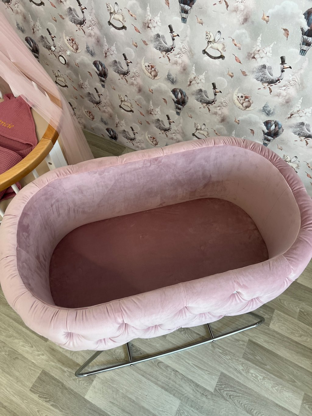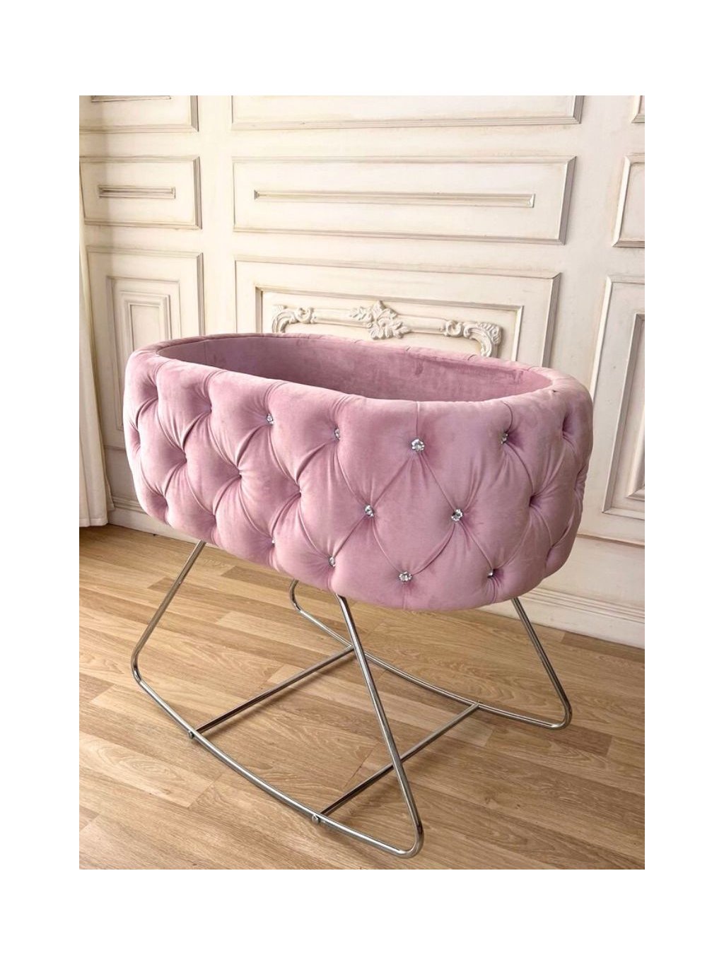 Chesterfield PINK koš s houpacími lyžinami + SWAROVSKI kameny č. 8 čalouněný chesterfield koš s houpacími nohami