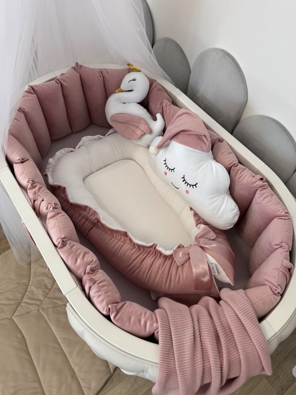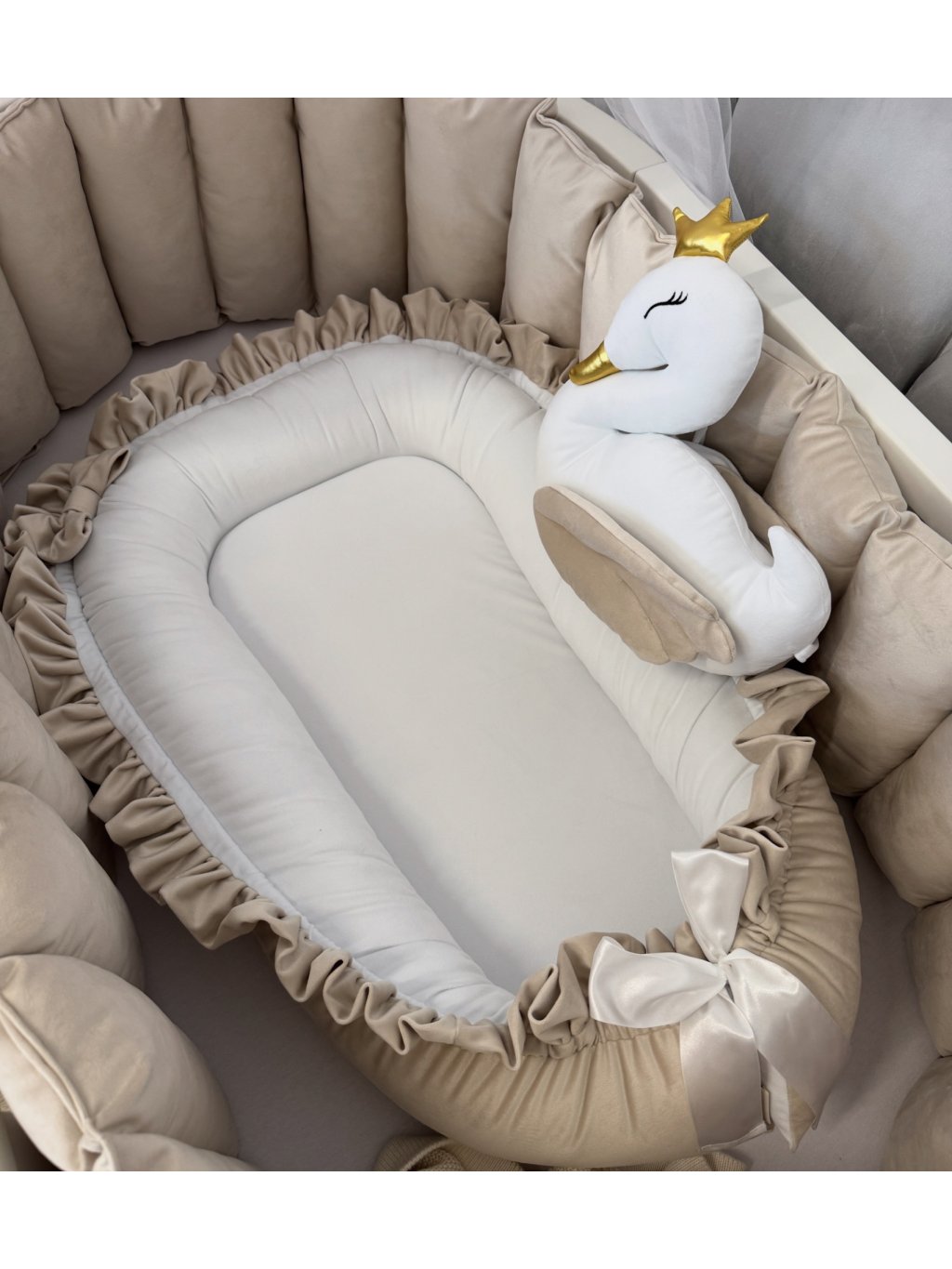 Labuť s korunkou, zobáčkem a křídlem z velvetu - na přání Labuť polštář Oval Bed