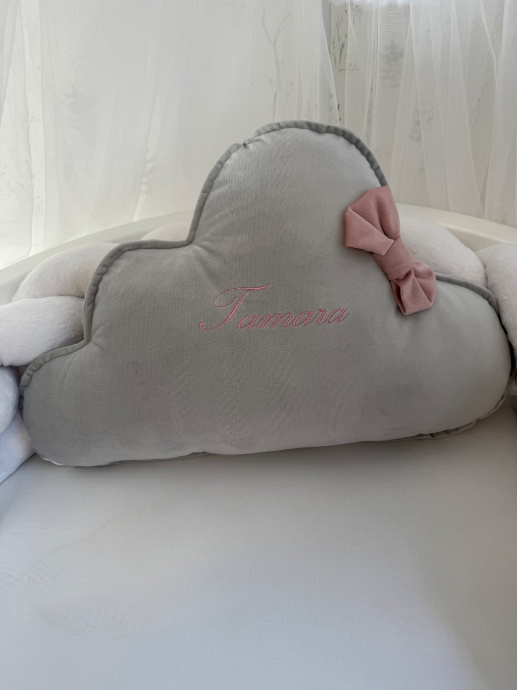 Polštářek ve tvaru mráčku doplněný mašličkou
