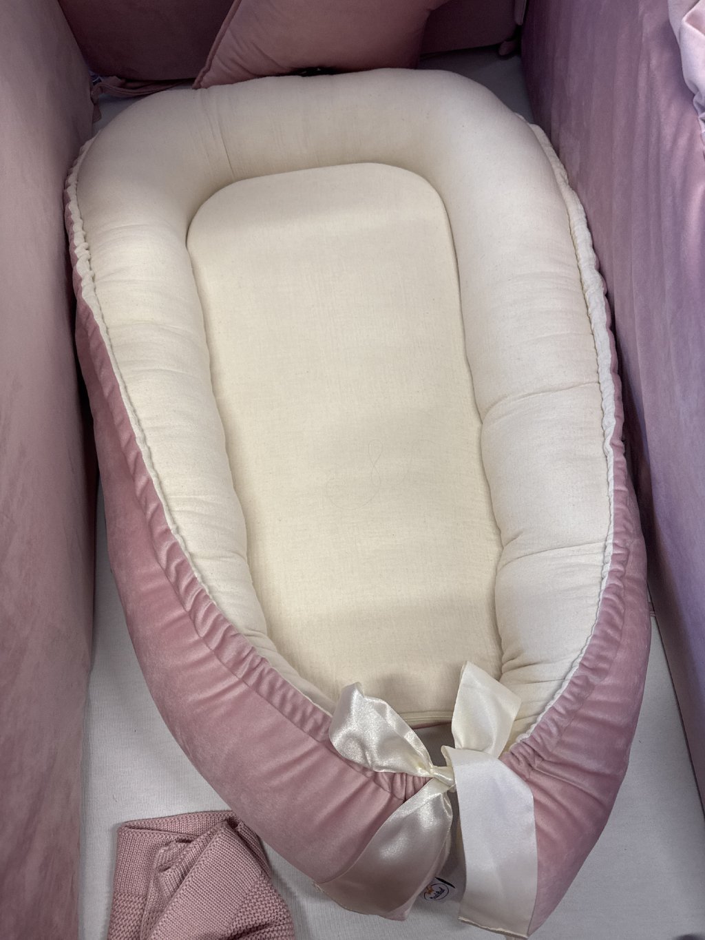 Hnízdečko bez volánku - natur krémový mušelín + starorůžový ultrasoft velvet - VÝPRODEJ