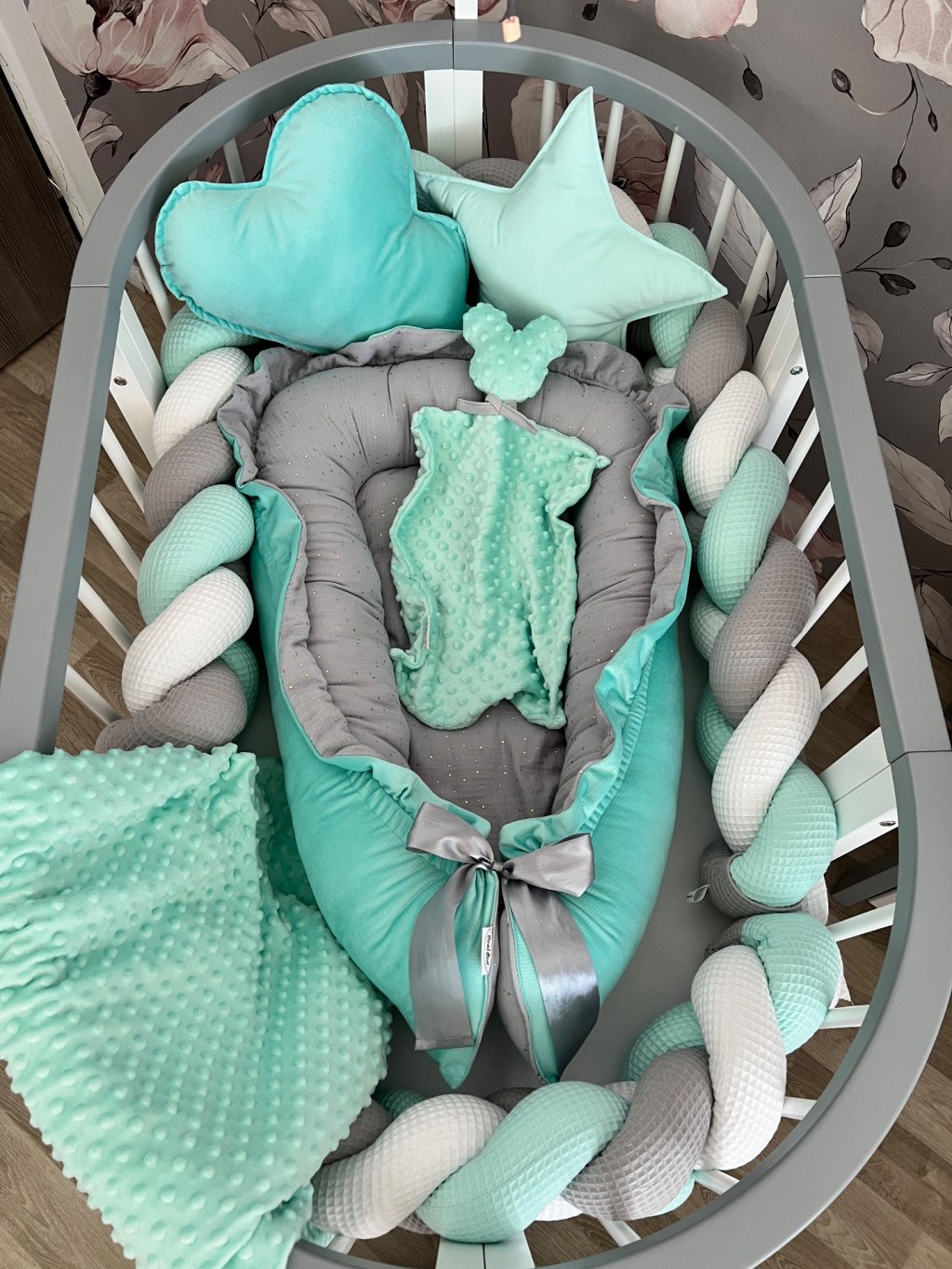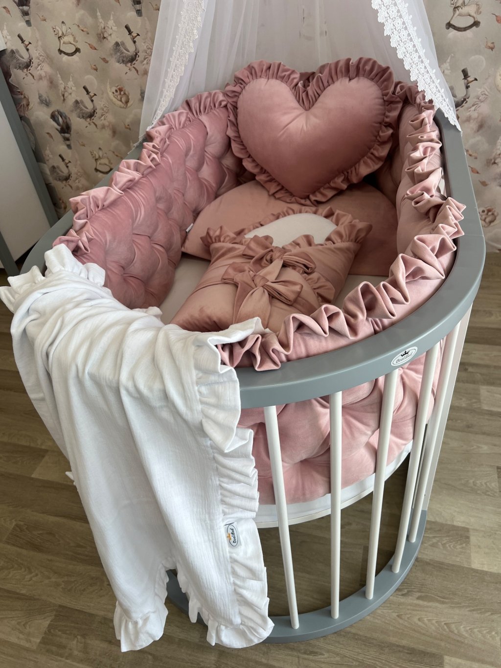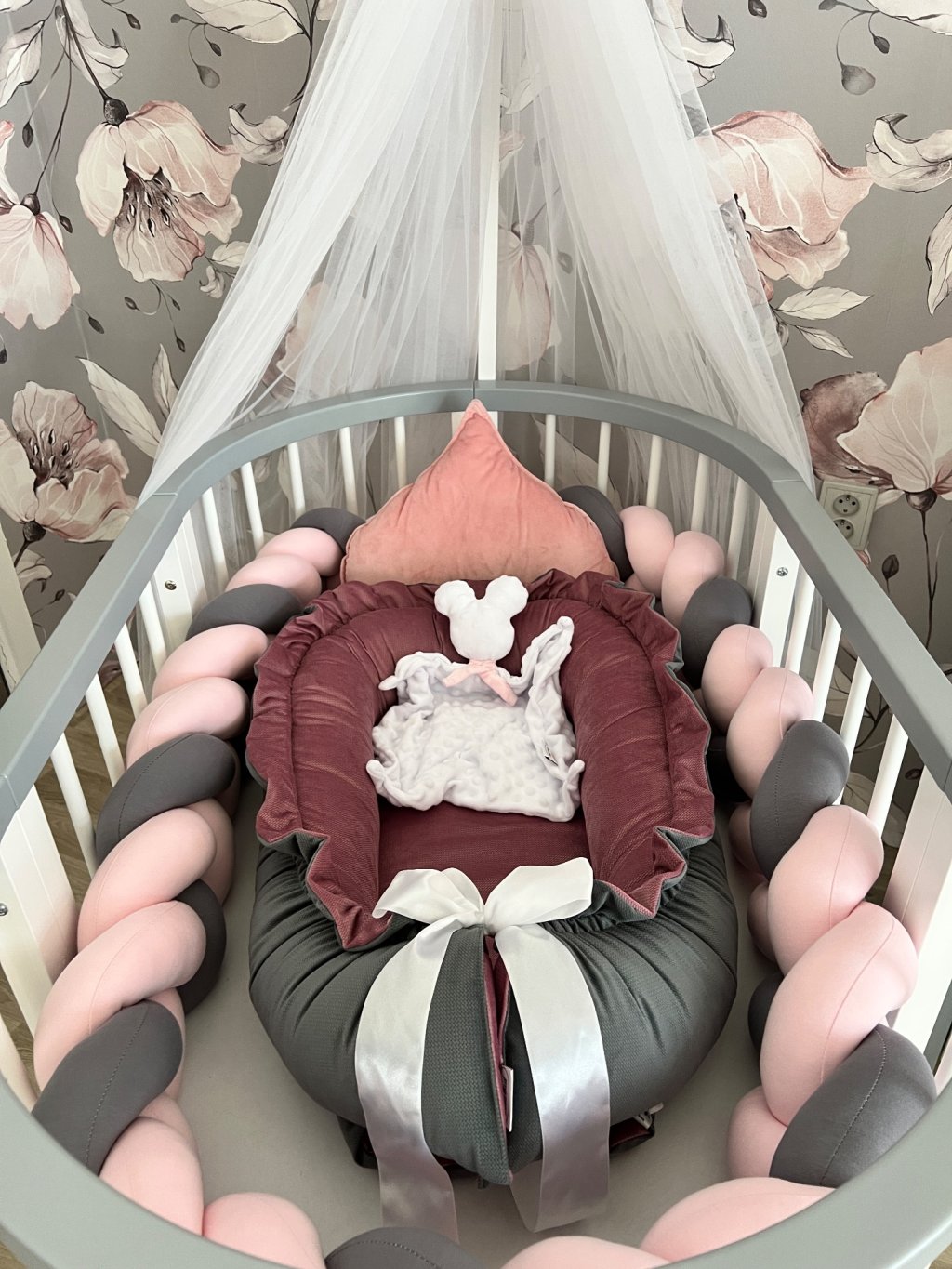 - Kulatá postýlka: Moderní design se zaoblenými rohy vytváří pro miminko bezpečné a pohodlné prostředí, ideální pro jeho první měsíce života. Zaoblené rohy zajišťují maximální bezpečnost, a díky nim můžete k postýlce snadno přistoupit z kteréhokoli úhlu. Kulatá postýlka slouží miminku cca do 3-4 měsíců, následně se skládá na oválnou verzi (délka užívání závisí také na počtu mantinelů, polštářků ale i velikosti samotného miminka aj.)