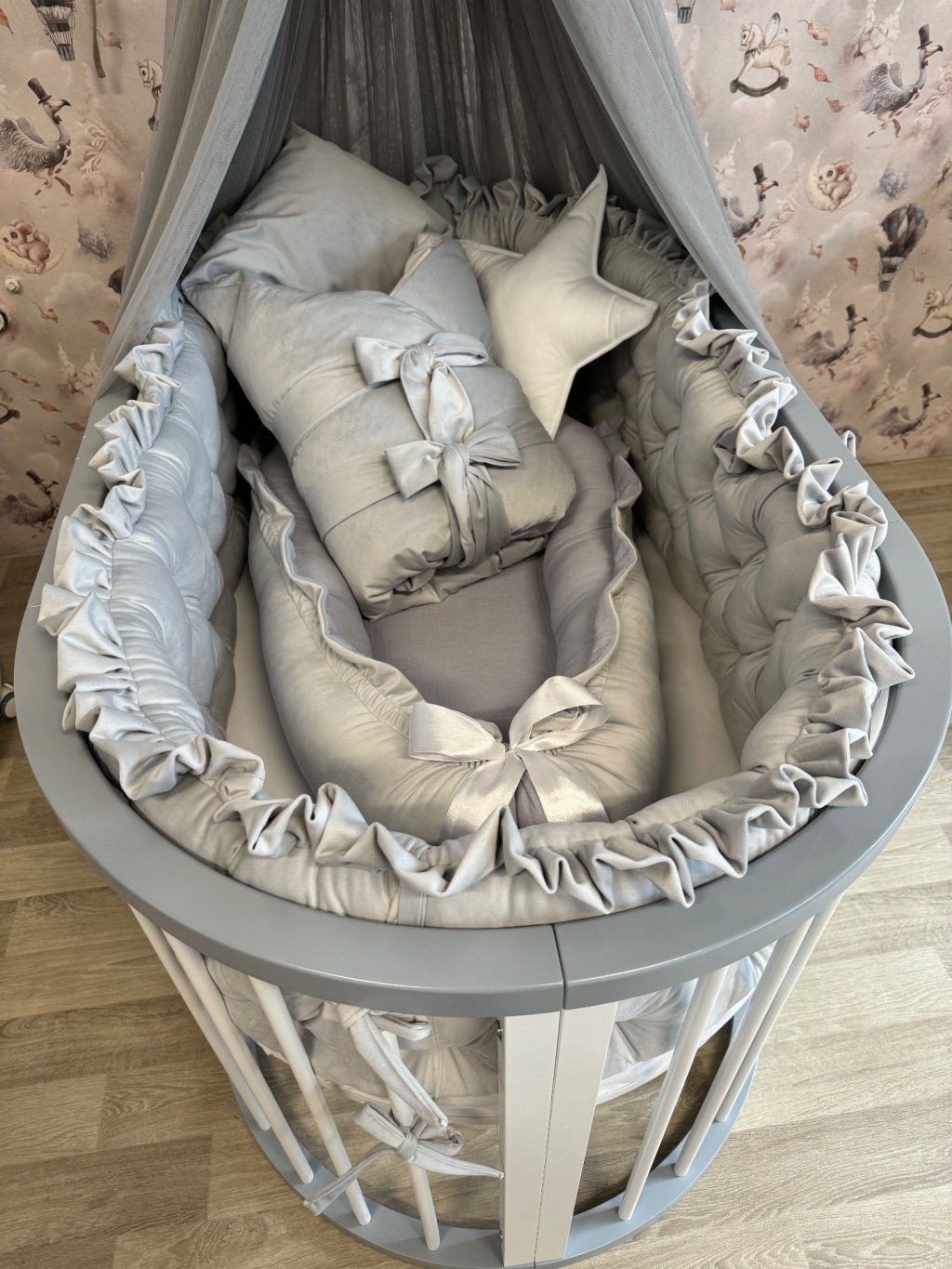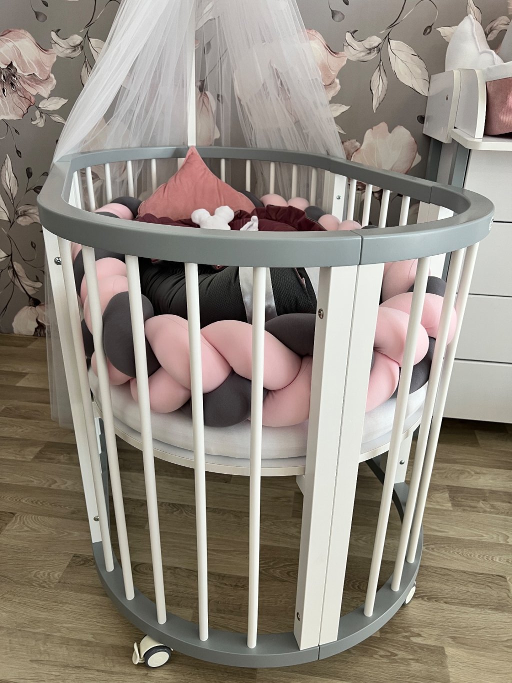 Kulatá rostoucí postýlka Oval Bed 9v1 bílá+šedá