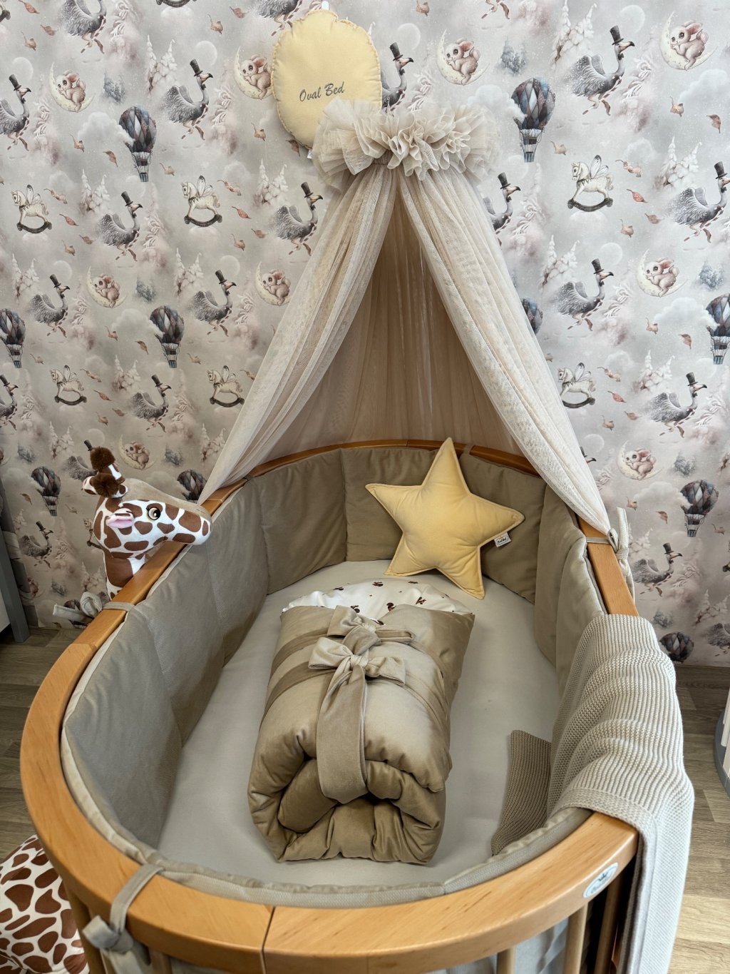 - Oválná postýlka: Oválná postýlka je ideálním řešením pro miminko, které v ní může spokojeně strávit co nejdelší dobu. Díky svému jedinečnému designu se zaoblenými rohy poskytuje nejen moderní vzhled, ale také praktickou funkčnost. Její 360° rozhled umožňuje děťátku pozorovat své okolí ze všech stran, což podporuje jeho zvědavost a pocit bezpečí. Tento nádherný a zároveň praktický kousek se stane nepřehlédnutelným designovým prvkem každého dětského pokojíčku.