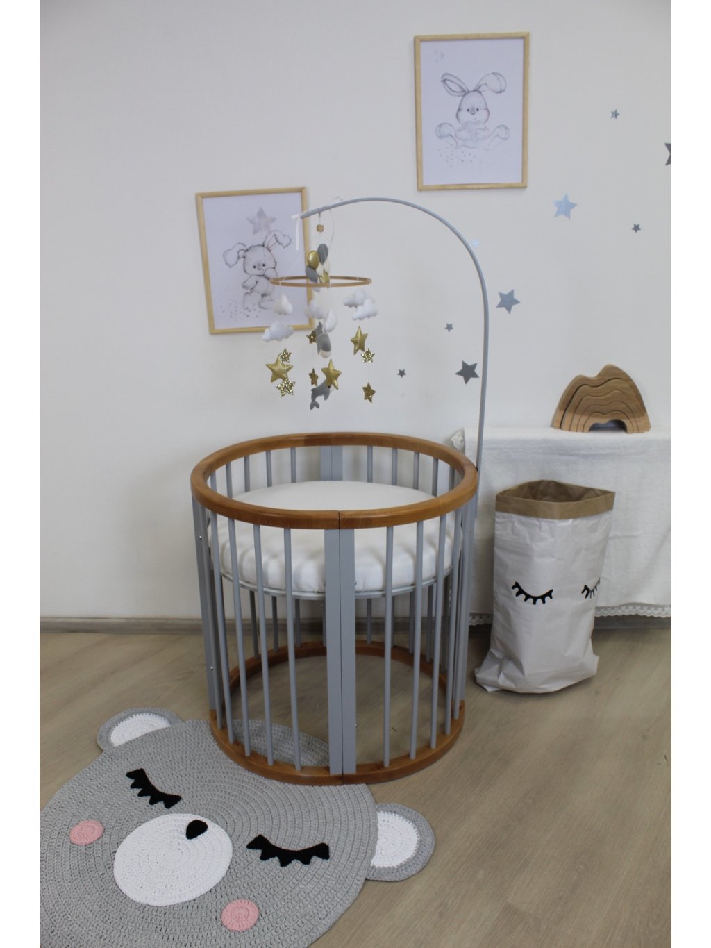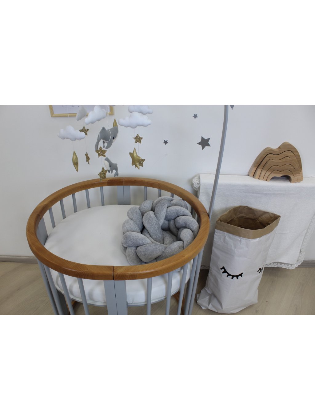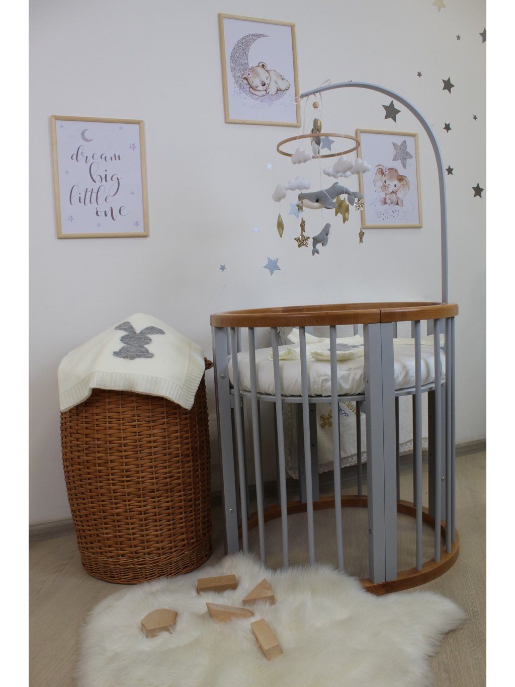 Kulatá rostoucí postýlka Oval Bed 9v1 šedá+přírodní