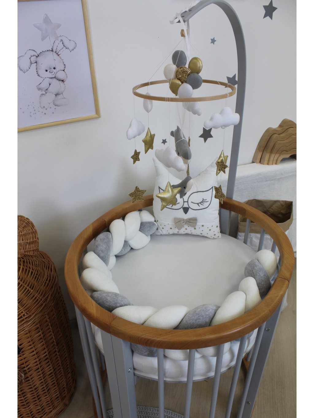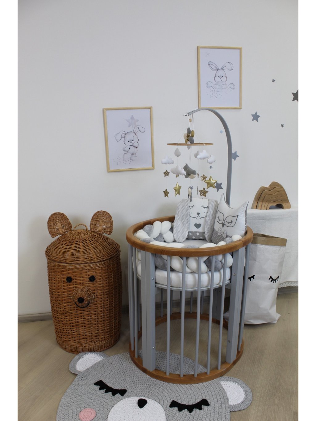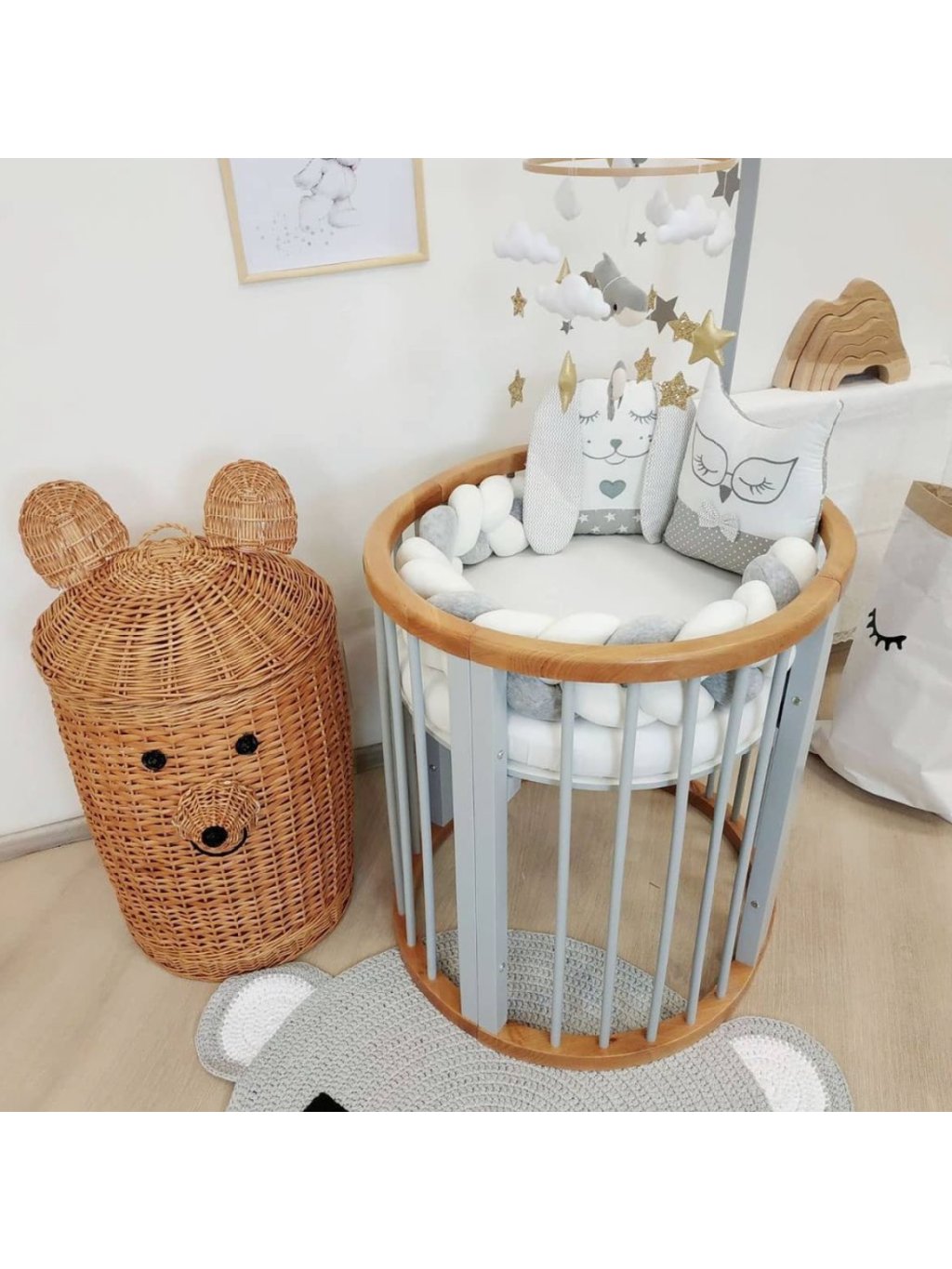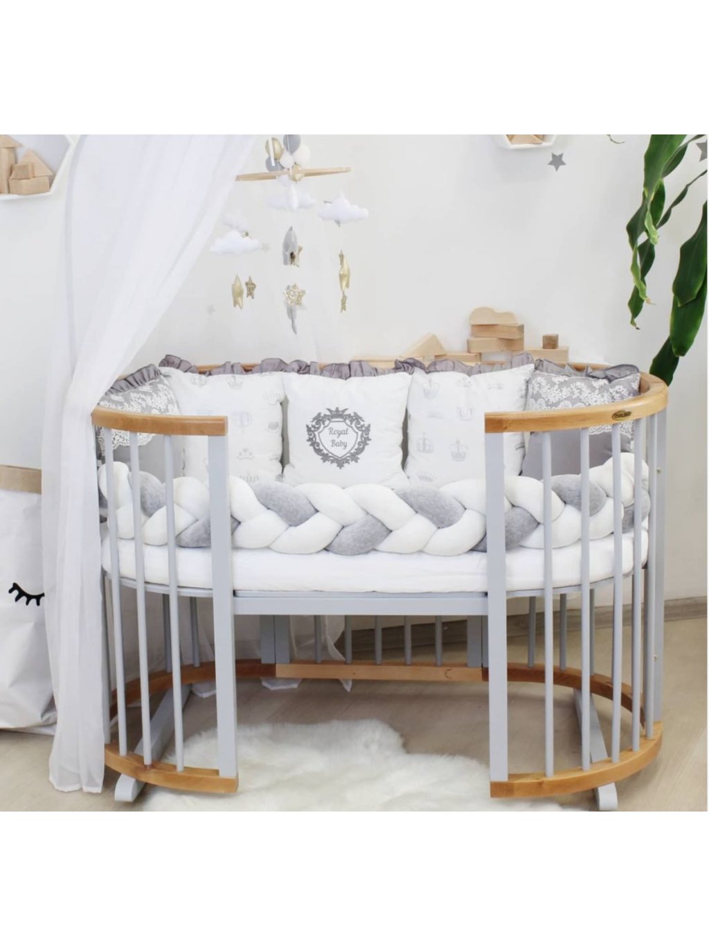 Kulatá rostoucí postýlka Oval Bed 9v1 šedá+přírodní