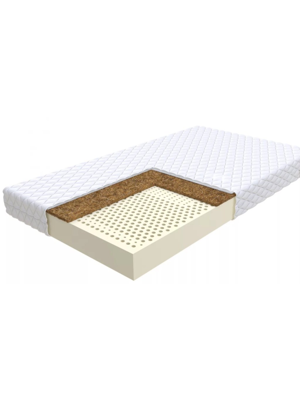 Kokosová vrstva (3 cm): Kokosové vlákno je přírodní materiál známý svou pevností a odolností, který dodává matraci potřebnou tuhost. Tato vrstva poskytuje výbornou oporu pro páteř dítěte, což je klíčové pro jeho správný vývoj. Kokosová deska je přirozeně prodyšná a umožňuje volný průchod vzduchu, čímž napomáhá odvádět vlhkost a udržuje optimální teplotu. Díky svým antibakteriálním vlastnostem kokos zabraňuje hromadění roztočů a plísní, což zajišťuje hygienické a zdravé prostředí pro spánek. Tento ekologicky šetrný materiál je také velmi odolný a dlouho vydrží.