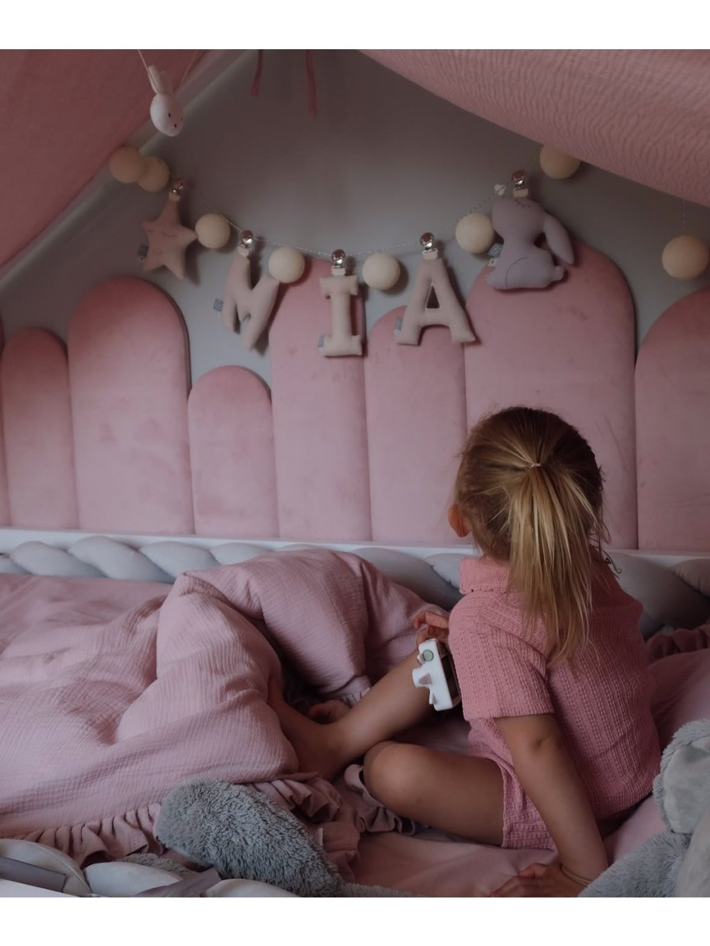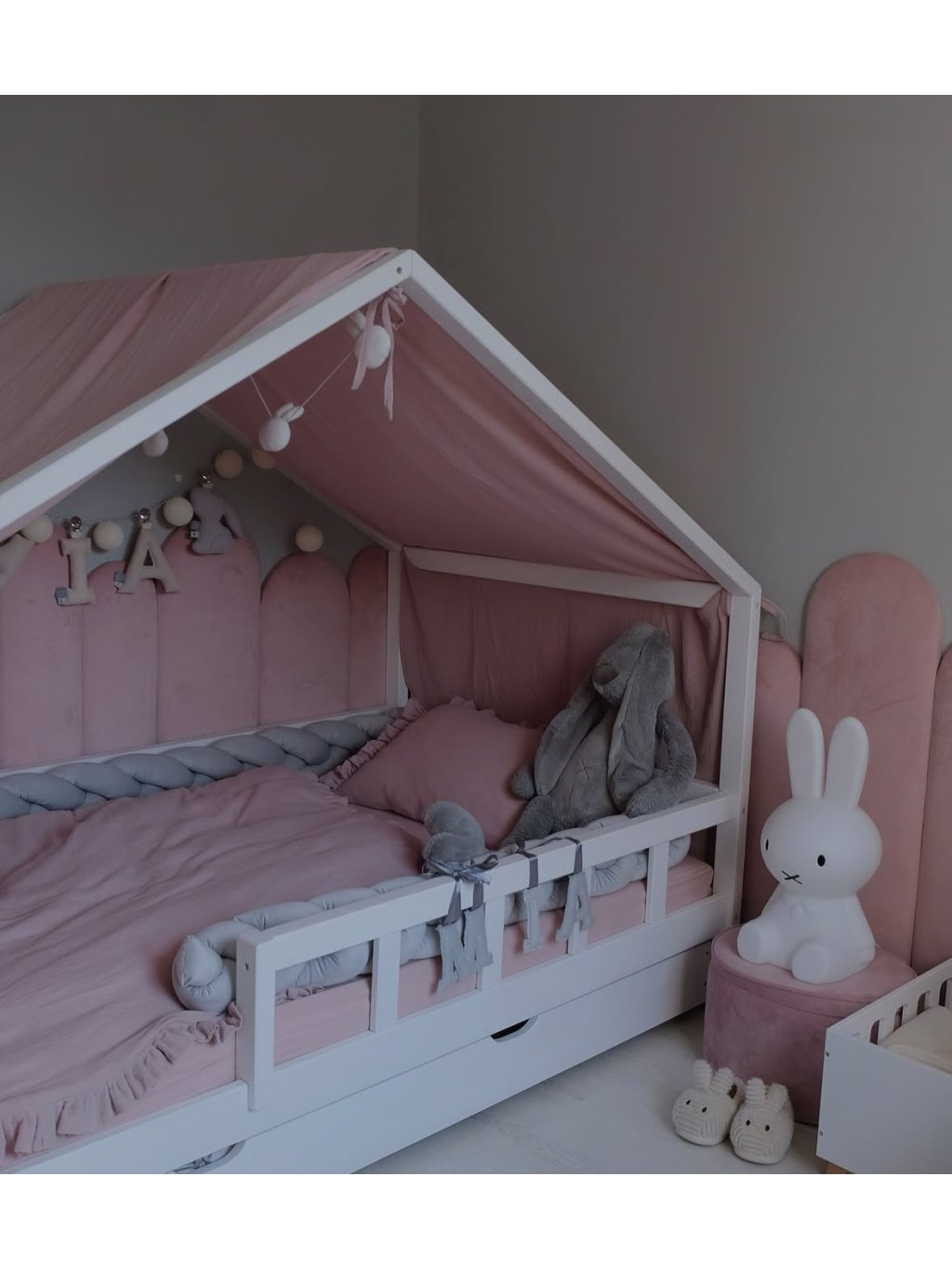 Nebesa jsou opatřena úvazky, pomocí kterých je lze snadno připevnit na několika místech ke konstrukci domečkové postele. Každý kus šijeme individuálně na míru podle rozměrů konkrétní postele. Na přání rádi ušijeme nebesa i pro jiné typy domečkových postelí – stačí nás kontaktovat a domluvíme detaily dle Vašich představ.