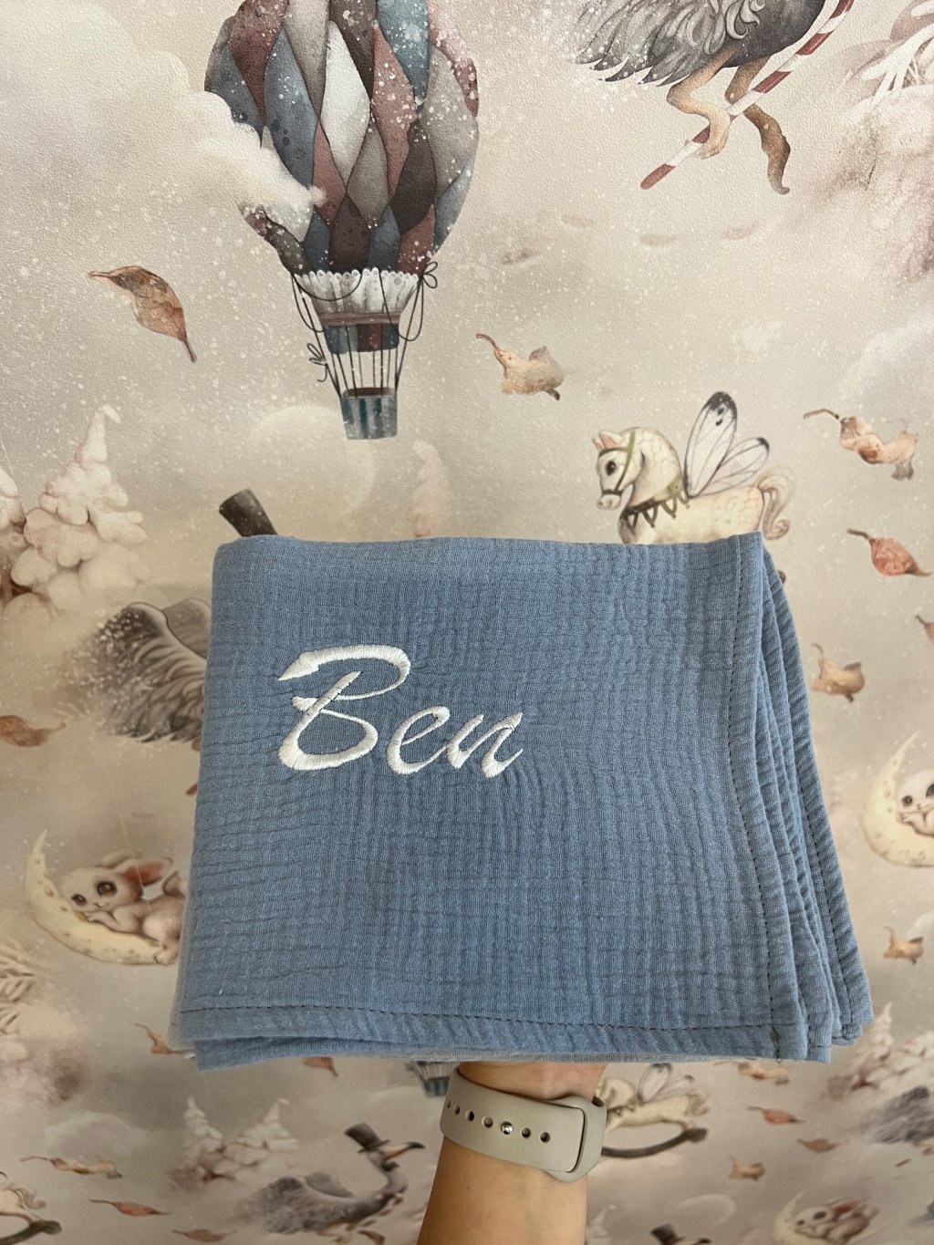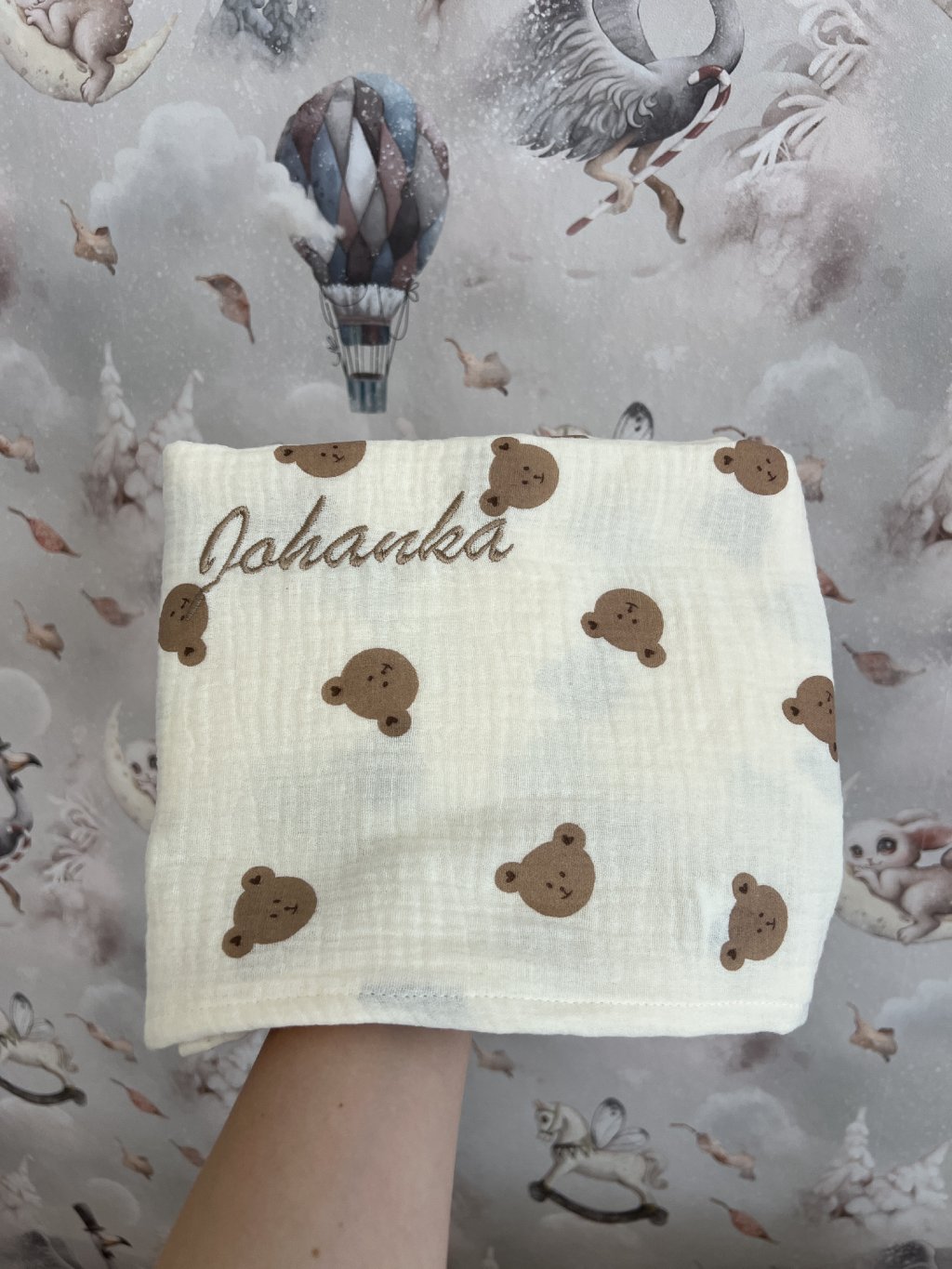 Mušelínová plenka s výšivkou 1 ks (65x50 cm)