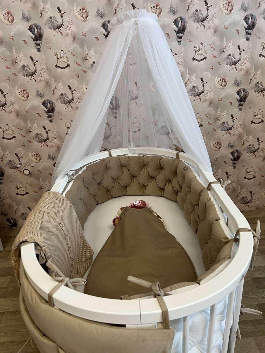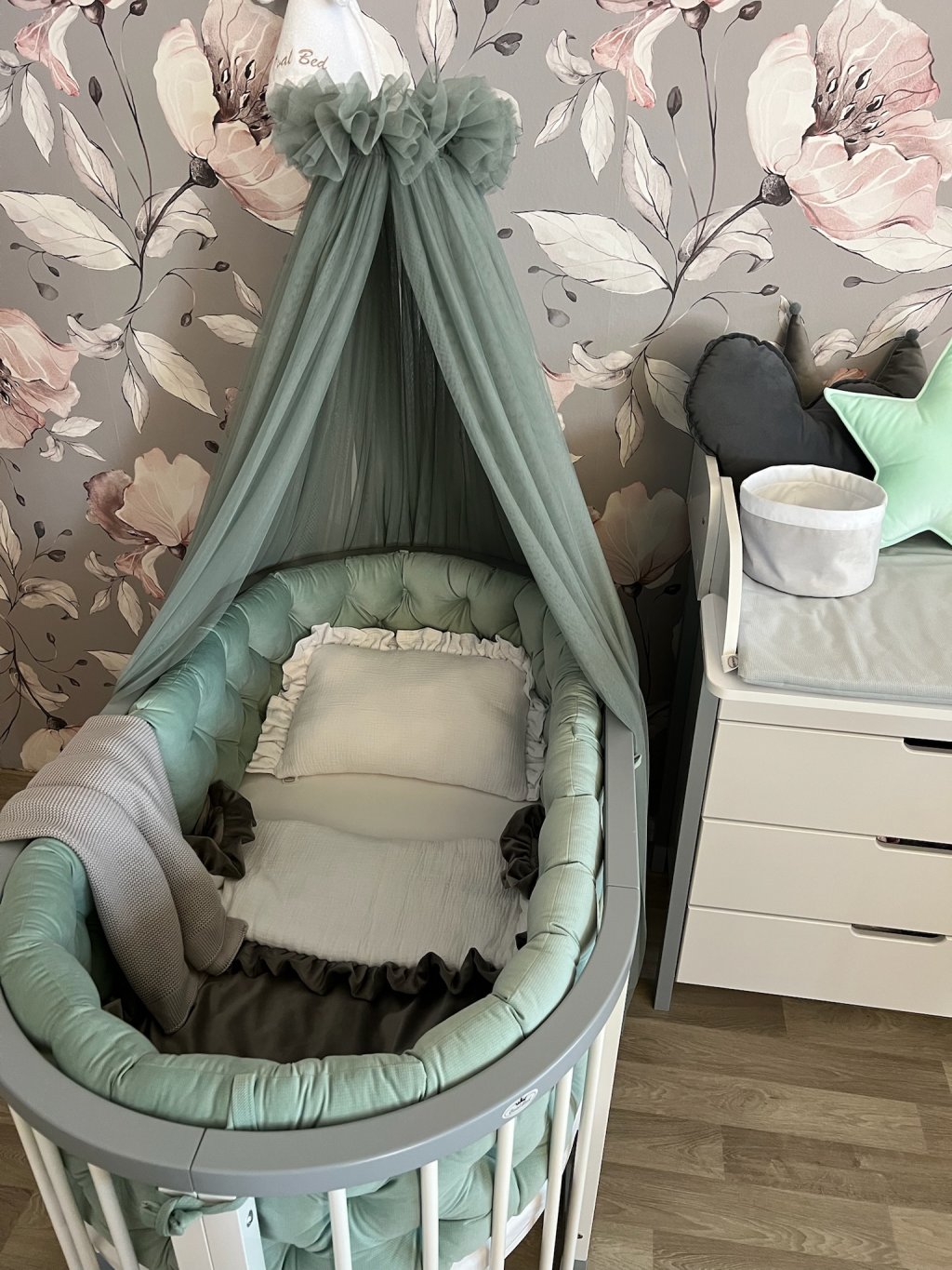 Jeden kus pokryje celý obvod kulaté postýlky.