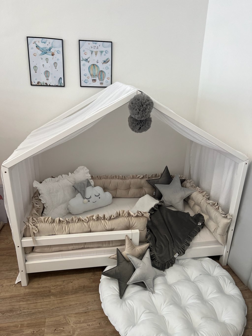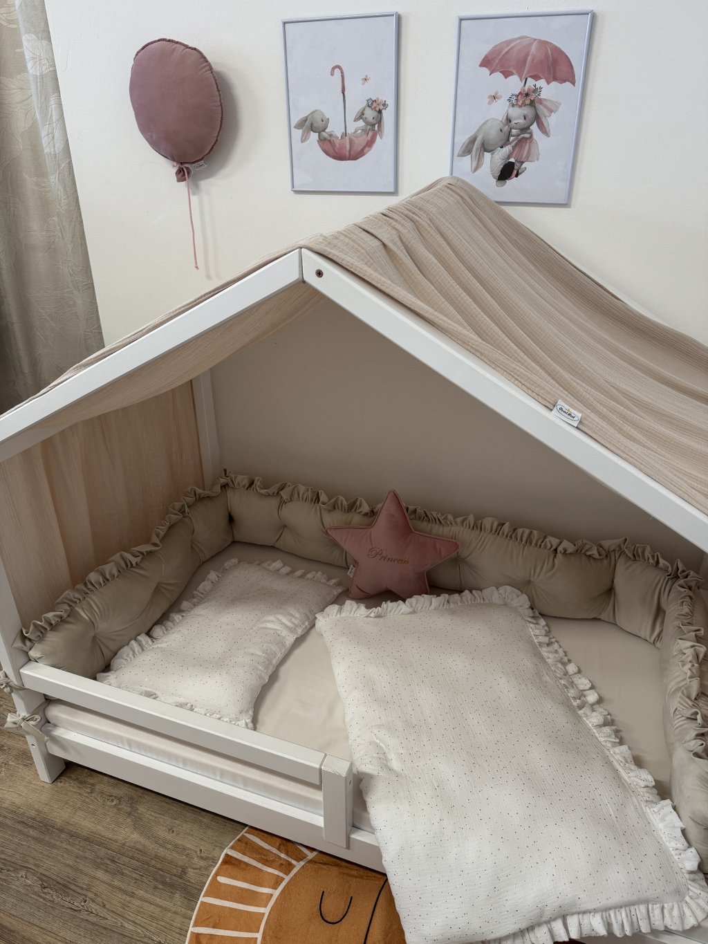 Chcete svému děťátku vytvořit měkkoučkou a bezpečnou bariéru u domečkové postele? Tento nadýchaný mantinel s volánky je ideální volbou. Díky úvazkům jej snadno připevníte, a navíc dodává postýlce styl a útulnost.