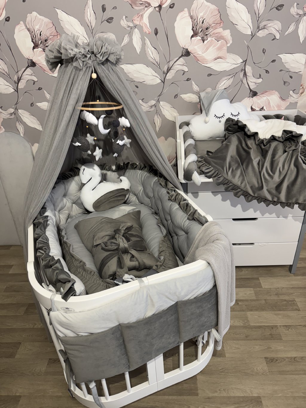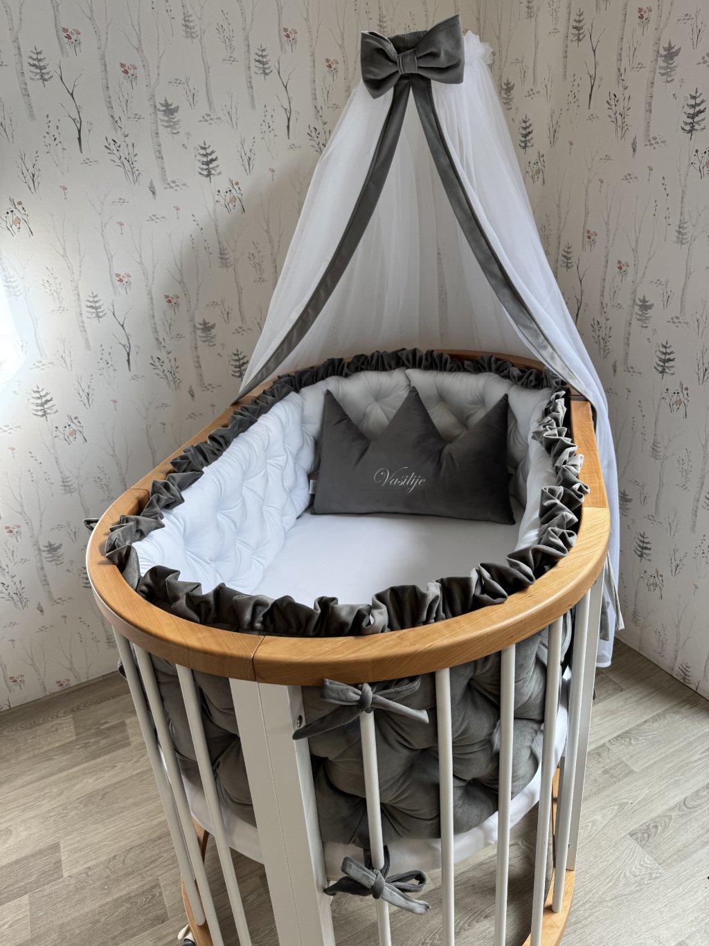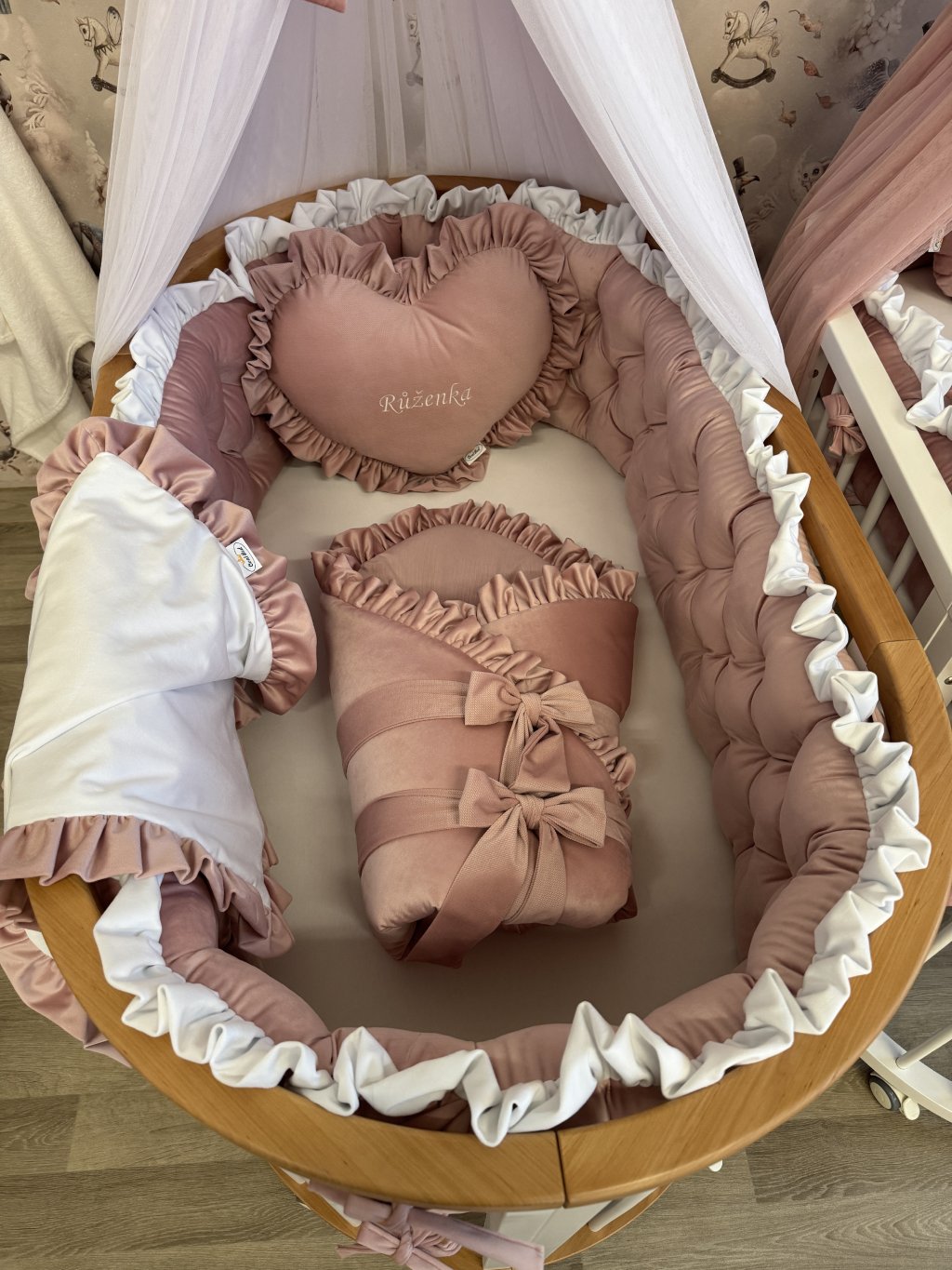 1 kus 320 × 30 cm po celém obvodu oválné postýlky.