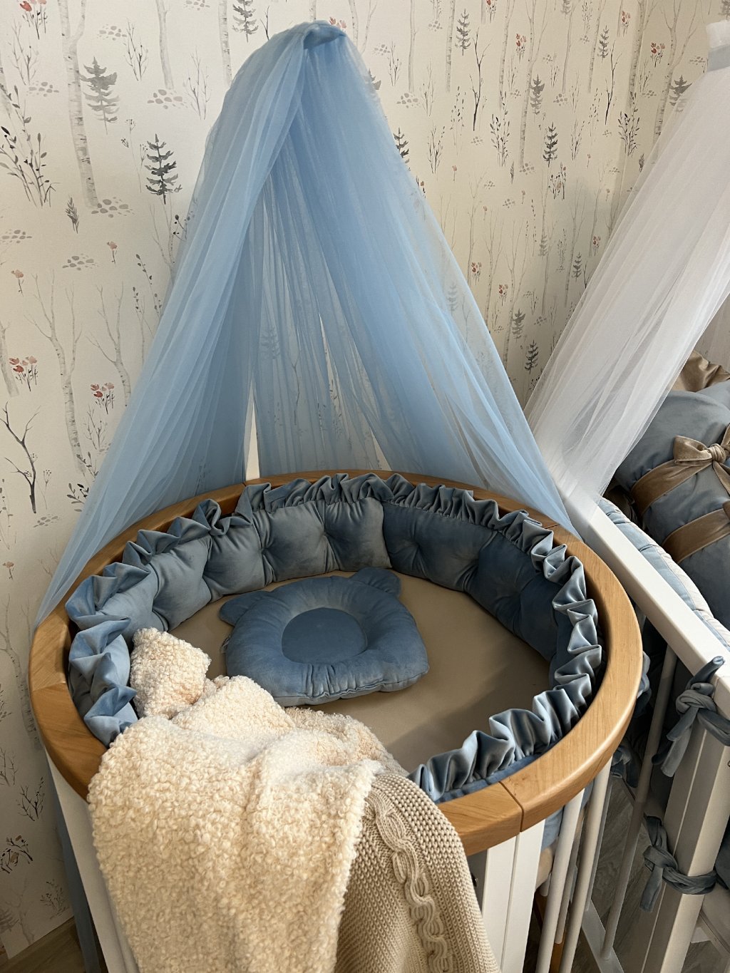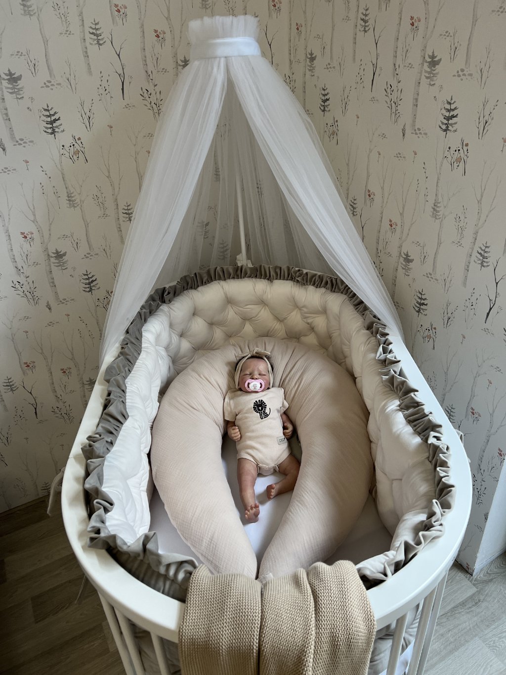Jeden kus pokryje celý obvod kulaté postýlky.
