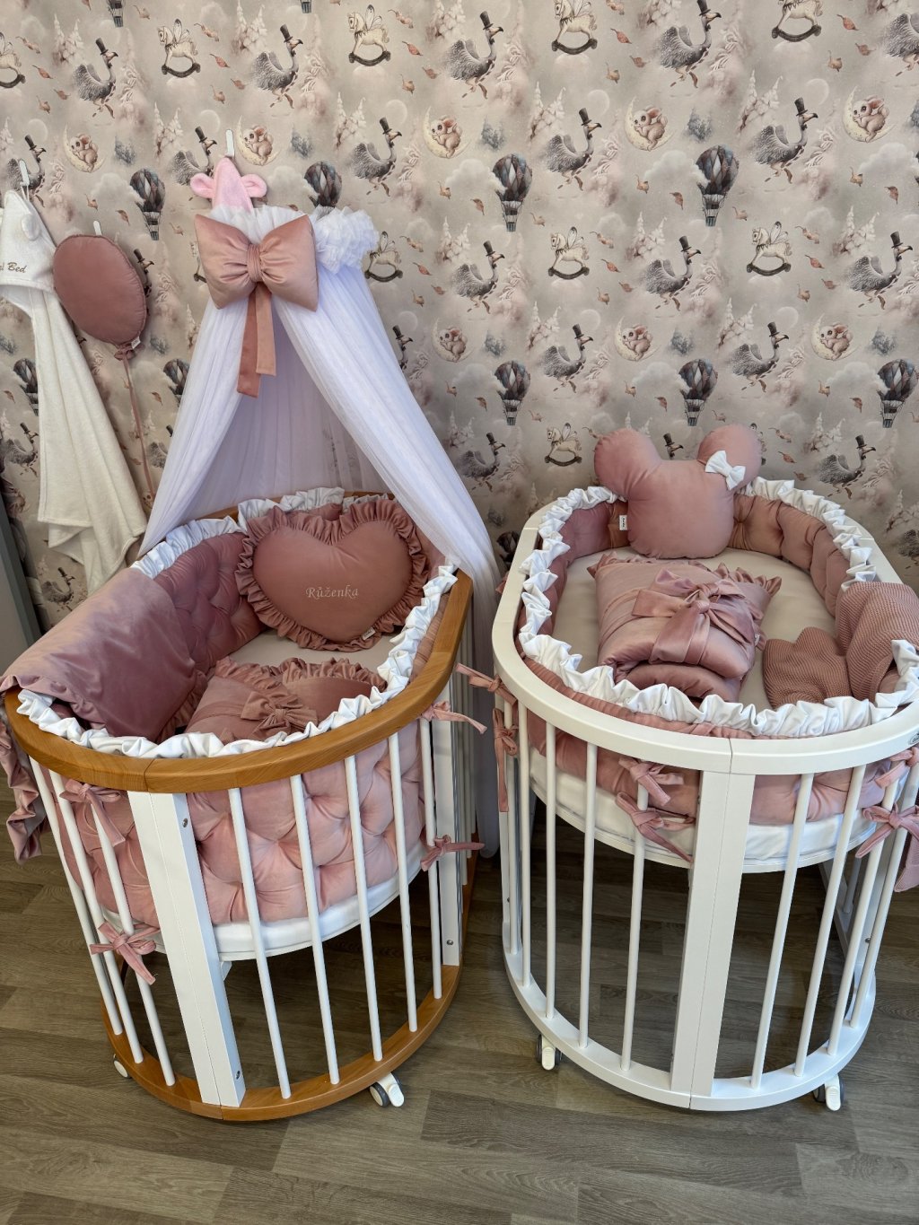 Nebesa jsou vhodná ke všem typům postýlek, pokud je použit kovový držák. Kovový držák není součástí balení a je možné jej dokoupit samostatně – v konfigurátoru si můžete zvolit variantu s držákem nebo bez držáku, pokud jej již máte.