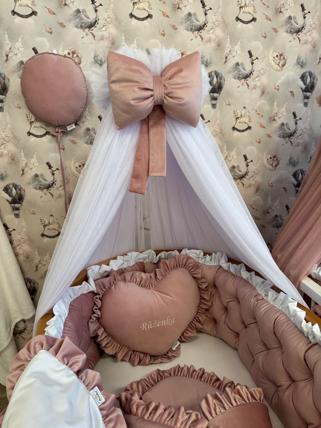 v horní části jsou nebesa doplněna napevno přišitou naducanou mašlí s úvazky