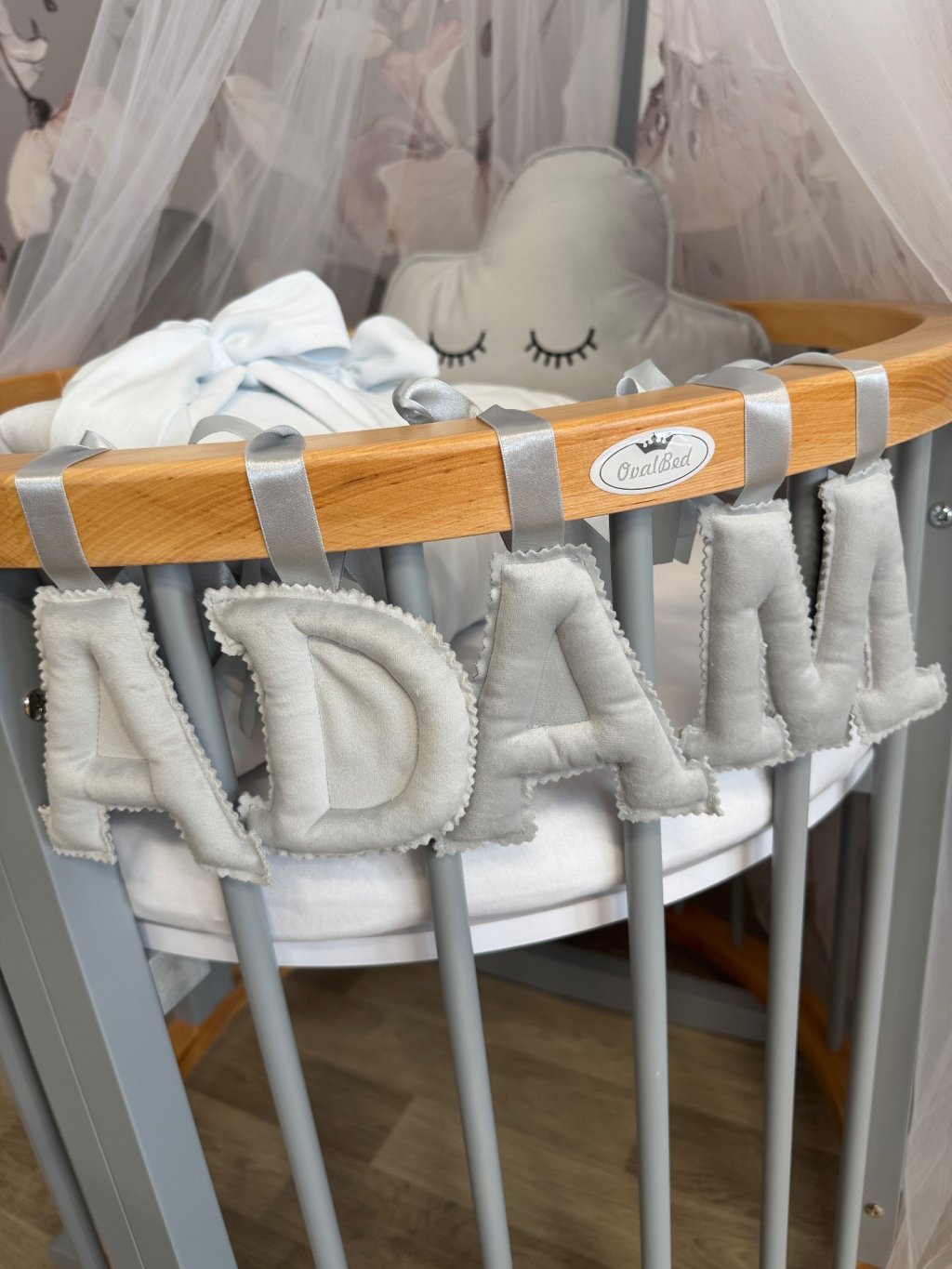 Písmenka šijeme s důrazem na detail a jemnost, aby krásně ladila s ostatní výbavičkou.