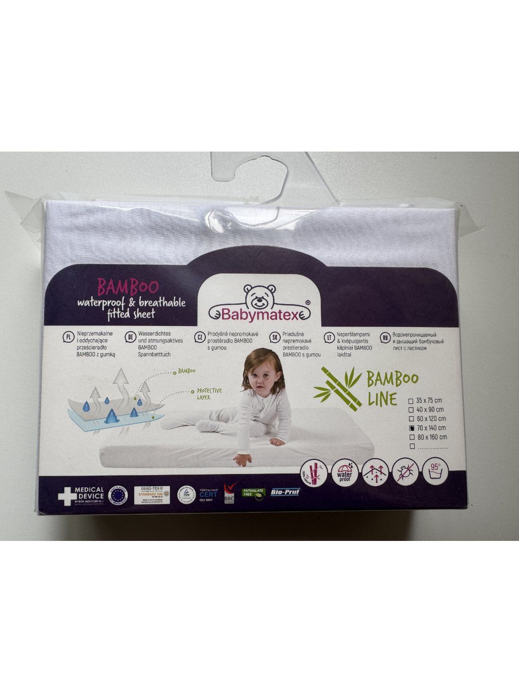 Prostěradlo 70x140 cm (hranaté) bílý nepropustný bambus