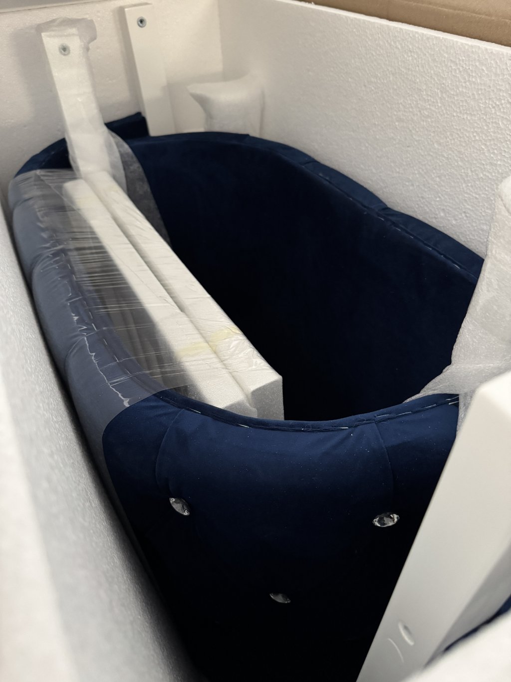- Barevná kombinace: tmavě modrý velur+bílá.