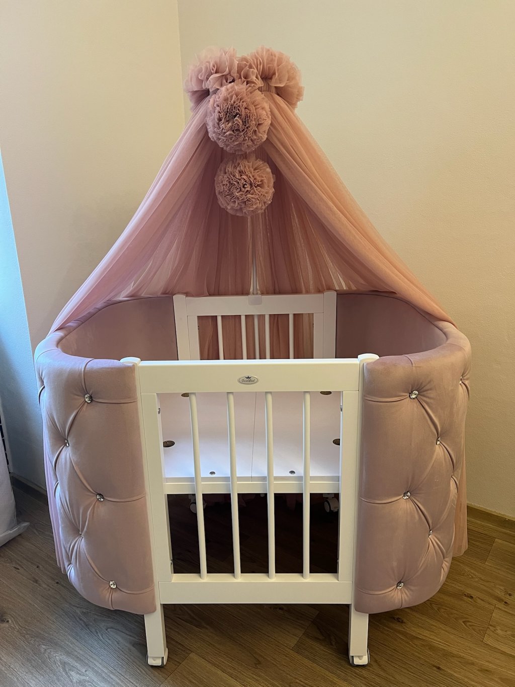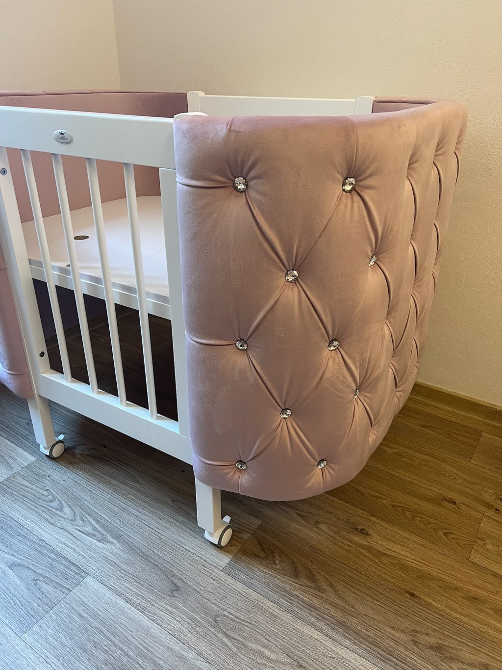- Postýlku si můžete vybrat s ozdobnými kameny Swarovski nebo s klasickými knoflíky.