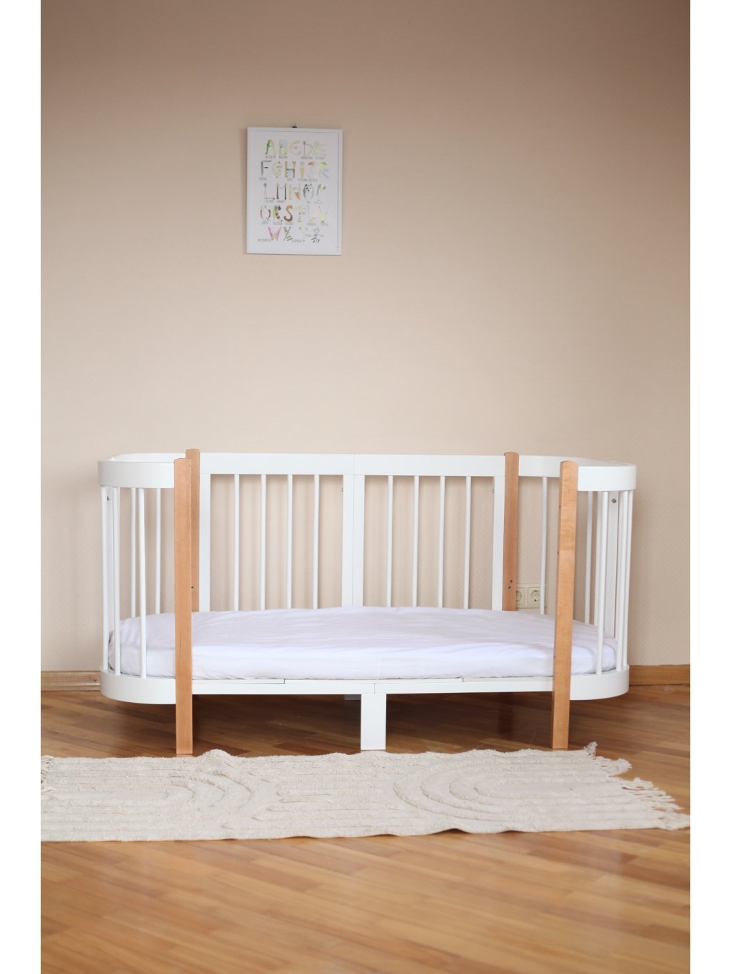 Rostoucí postýlka Oval Bed Happy Mum bílo-přírodní