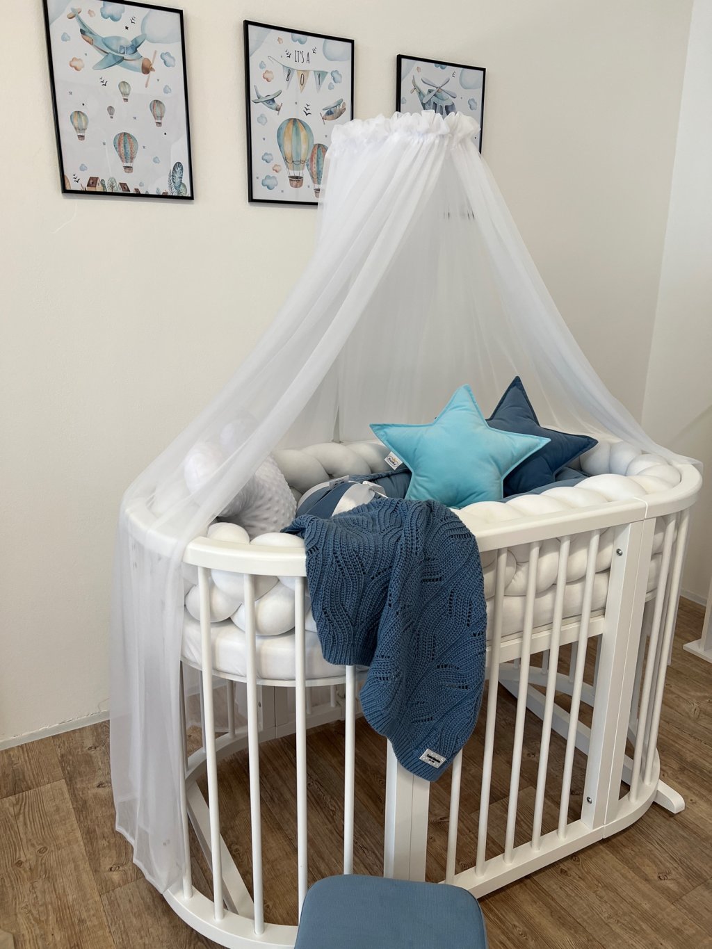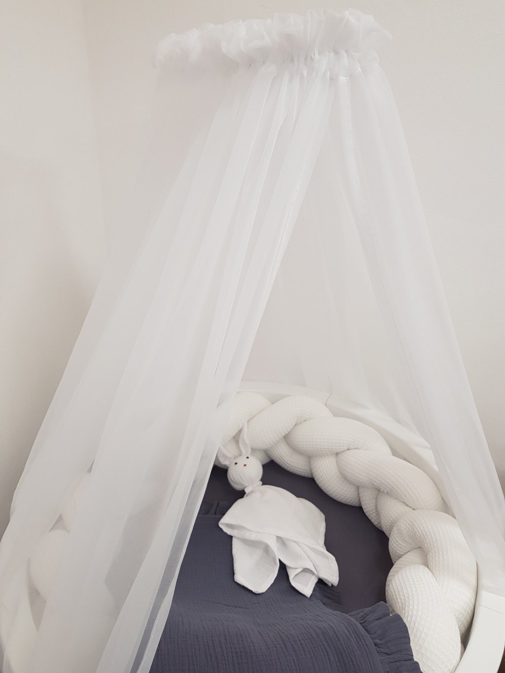 Nebesa chrání miminko před průvanem, přímým sluncem i hmyzem a zároveň dodávají postýlce elegantní vzhled. Každý kus je ručně šitý v naší dílně Oval Bed s důrazem na detail a kvalitu zpracování.