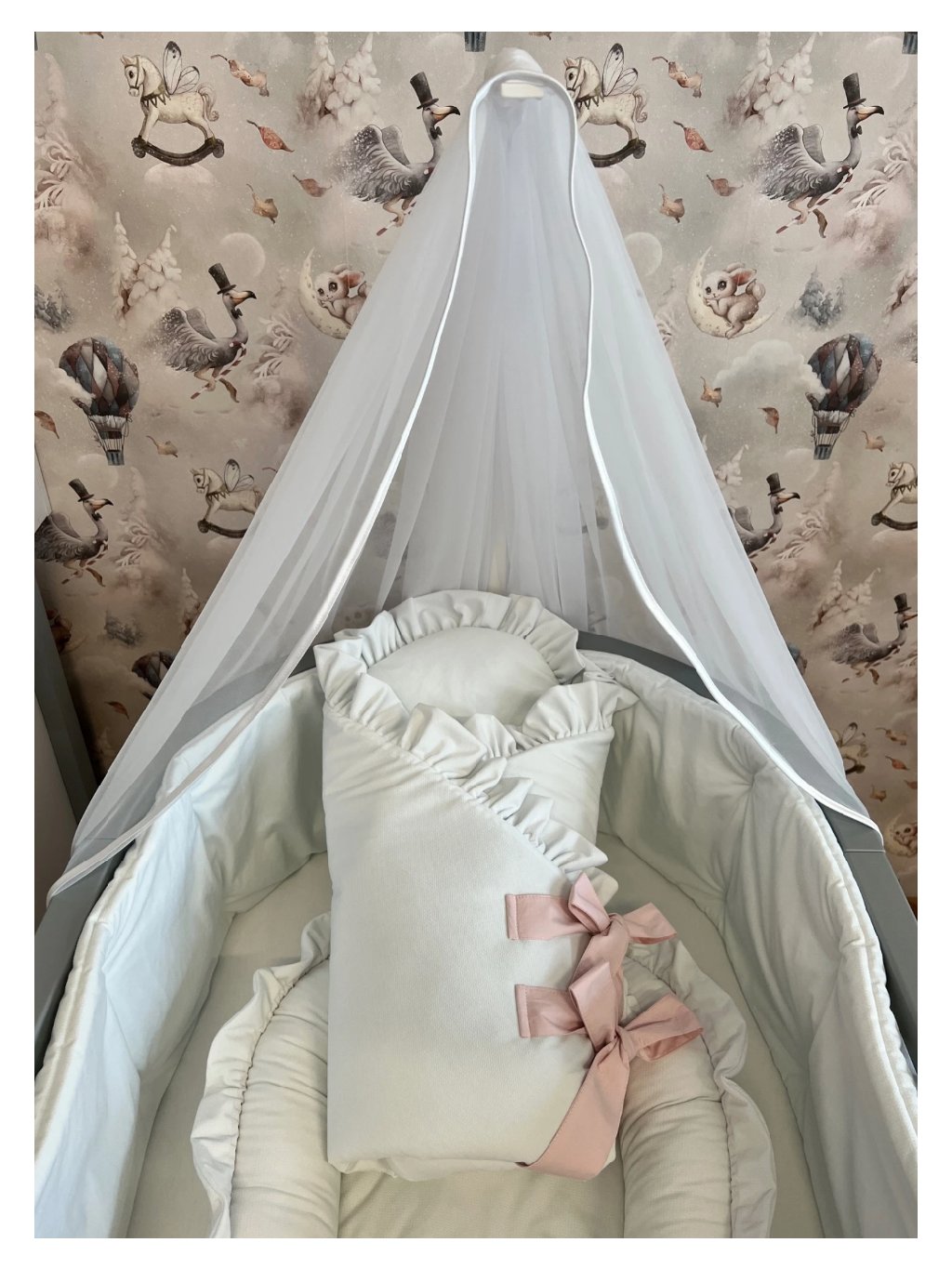 Nebesa chrání miminko před průvanem, sluncem i hmyzem a vytváří příjemné, útulné prostředí pro spánek i odpočinek. Každý kus šijeme ručně v naší dílně Oval Bed.