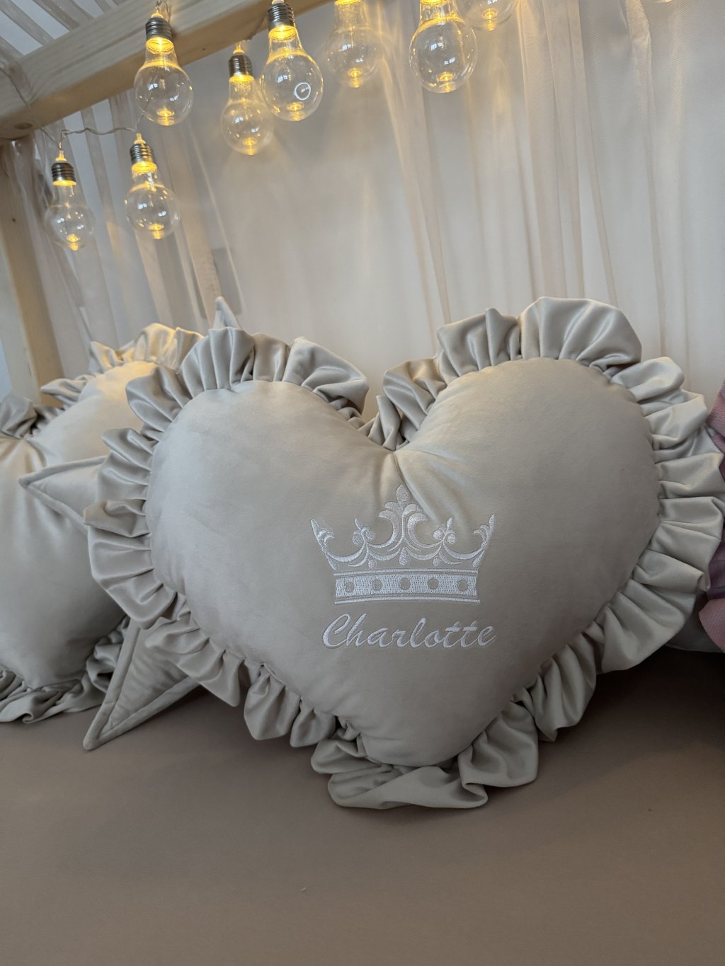 Srdíčko s volánkem (s výšivkou jména+královské korunky) - na přání s volánky