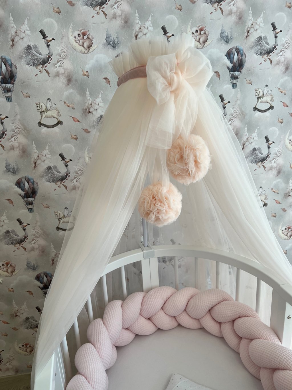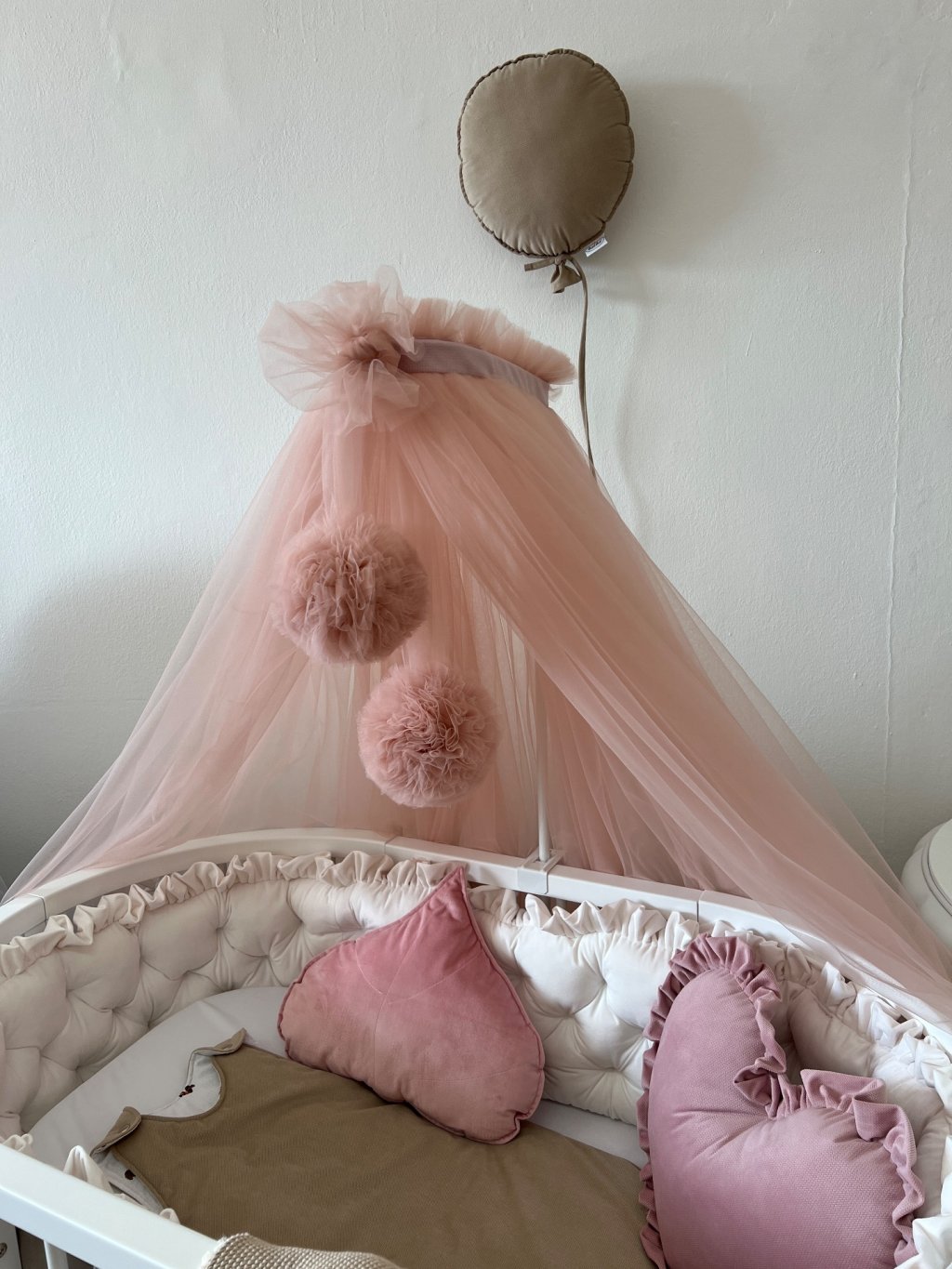 Tylová klasická nebesa s bambulkami na kovový držák s 2 bambulkami, klasický tyl, na kovový držák