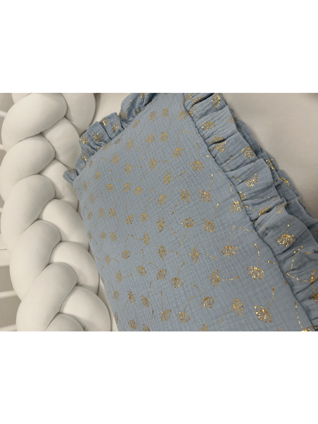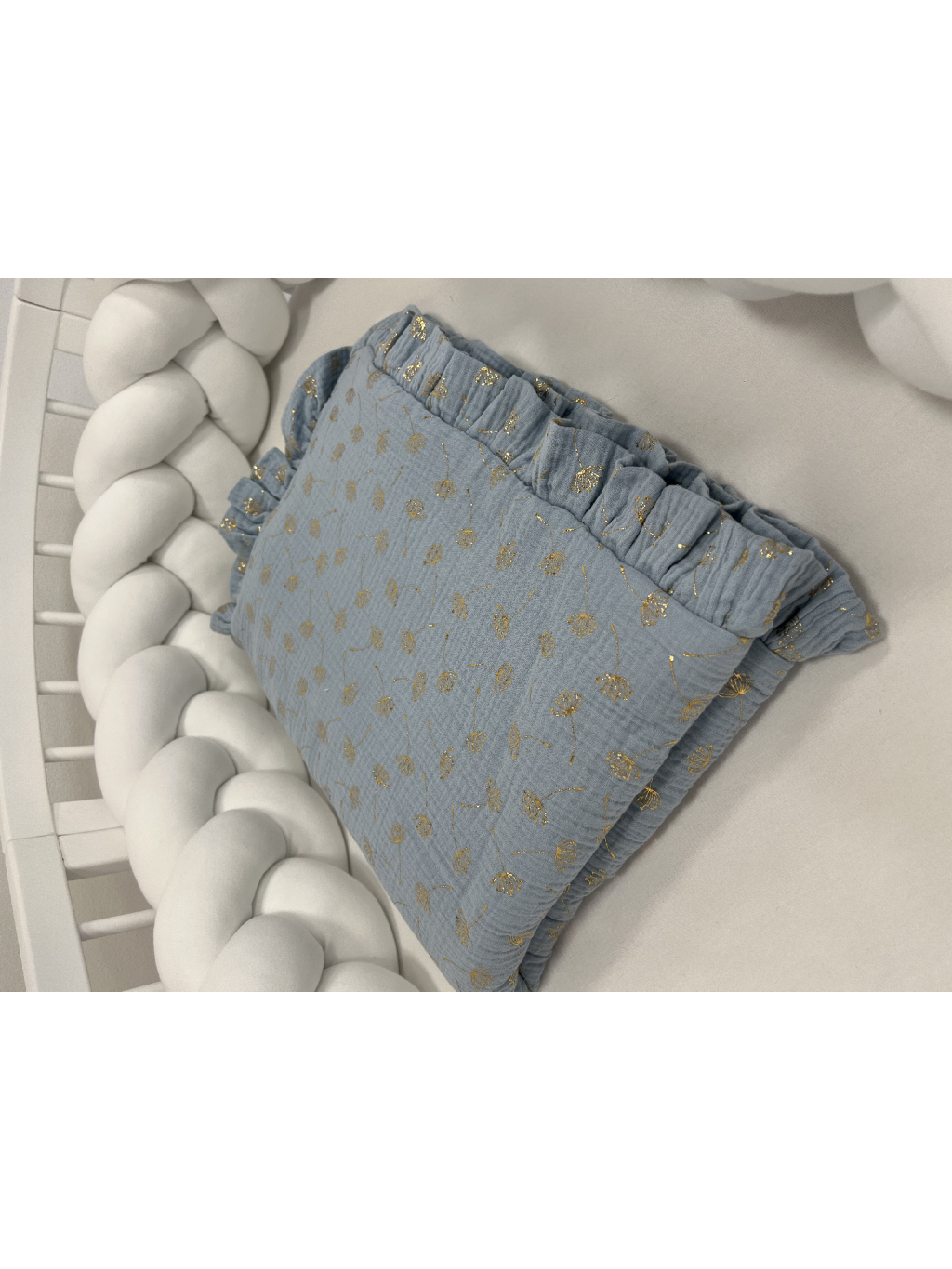 Zateplená deka s volánky 70x90 cm modrý mušelín+zlaté pampelišky
