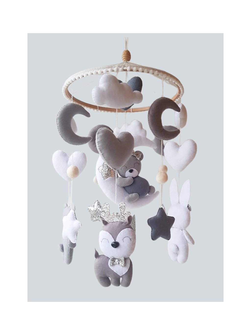 Kolotoč je stylovým a praktickým doplňkem nad dětskou postýlkou. Kolotoč je vhodný na náš dřevěný nebo kovový držák nebes, na který lze kolotoč připevnit.